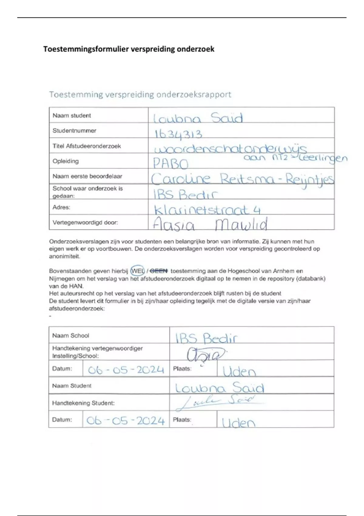 Toestemmingsformulier verspreiding onderzoek