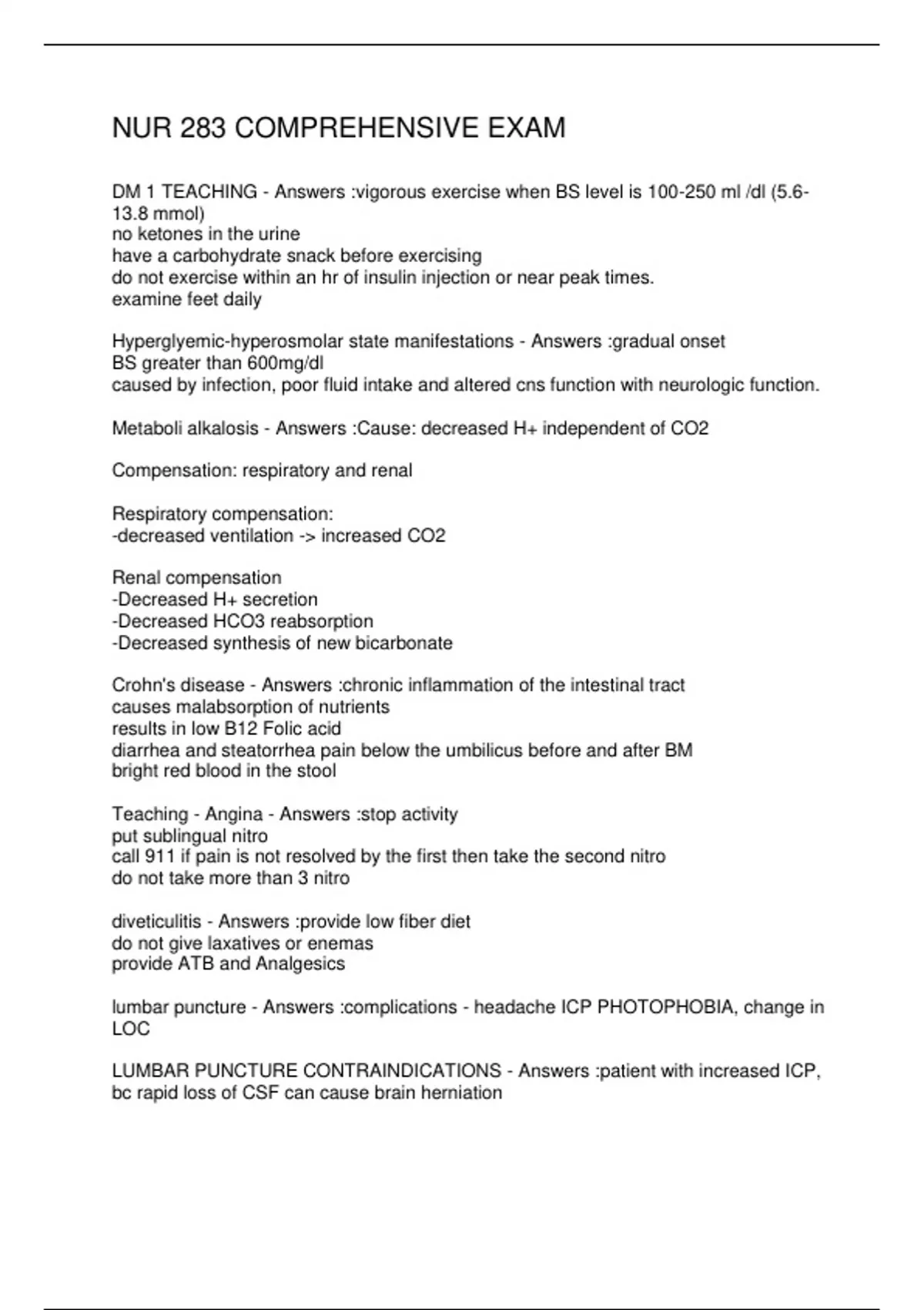 NUR 283 COMPREHENSIVE EXAM