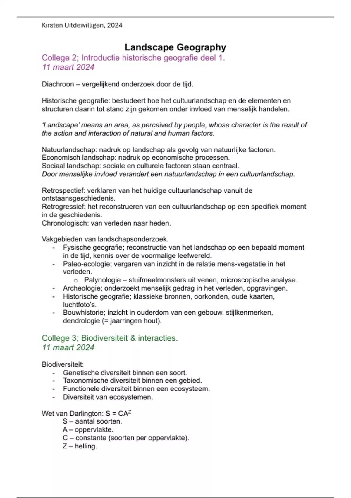 Historische geografie: bestudeert hoe het cultuurlandschap en de elementen en