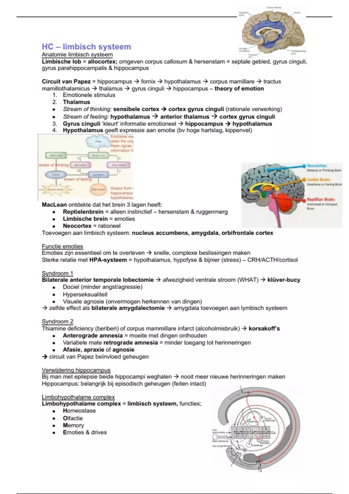 Limbohypothalame complex = limbisch systeem, functies;