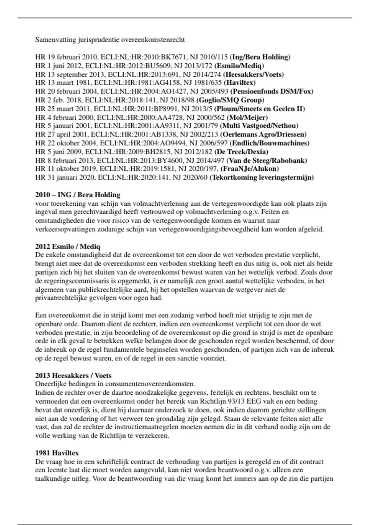 Alle verpliche jurisprudentie voor overeenkomstenrecht