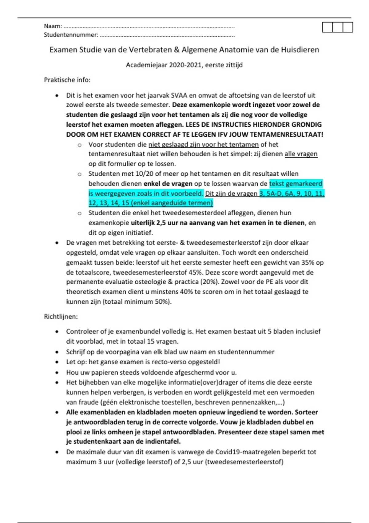 • De maximale duur van dit examen is vanwege de Covid19-maatregelen beperkt tot