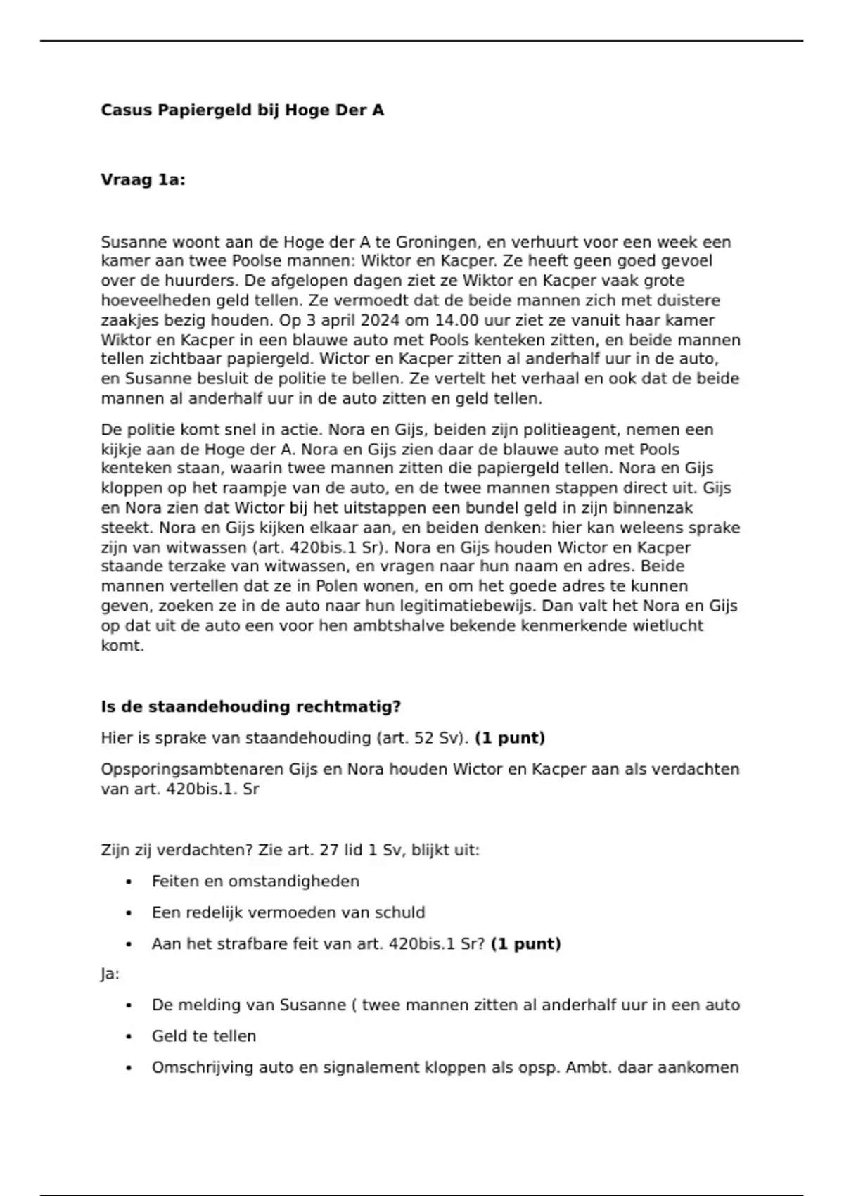 Aan het strafbare feit van art. 420bis.1 Sr? (1 punt)