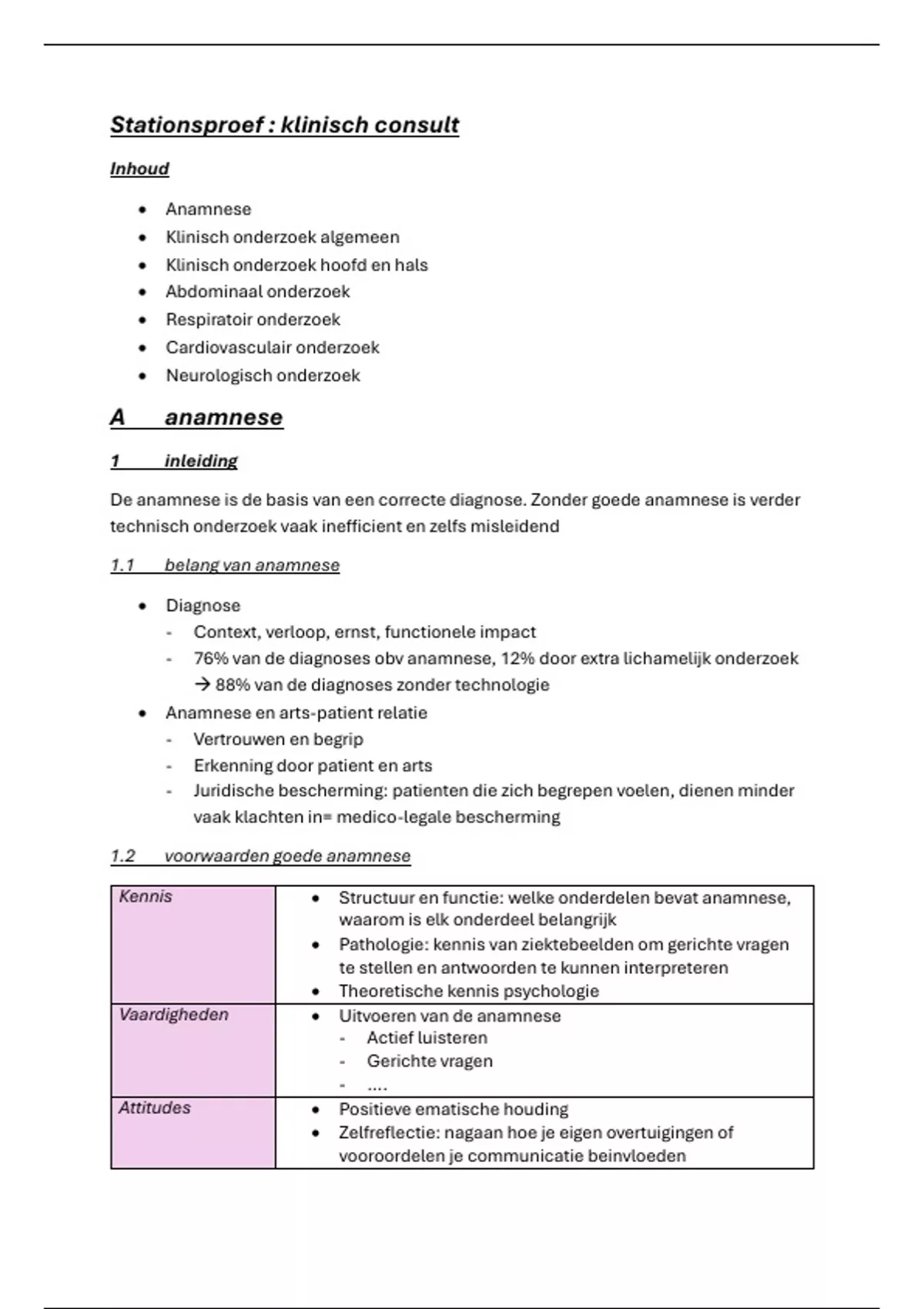 Samenvatting stationsproef: klinisch onderzoek + anamnese