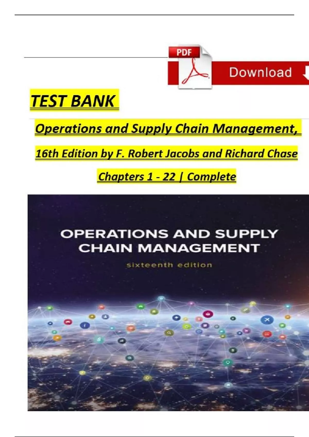 TEST BANK - Jacobs and Chase, Operations and Supply Chain Management 16th Edition, Chapters 1 - 22, Complete Newest Version