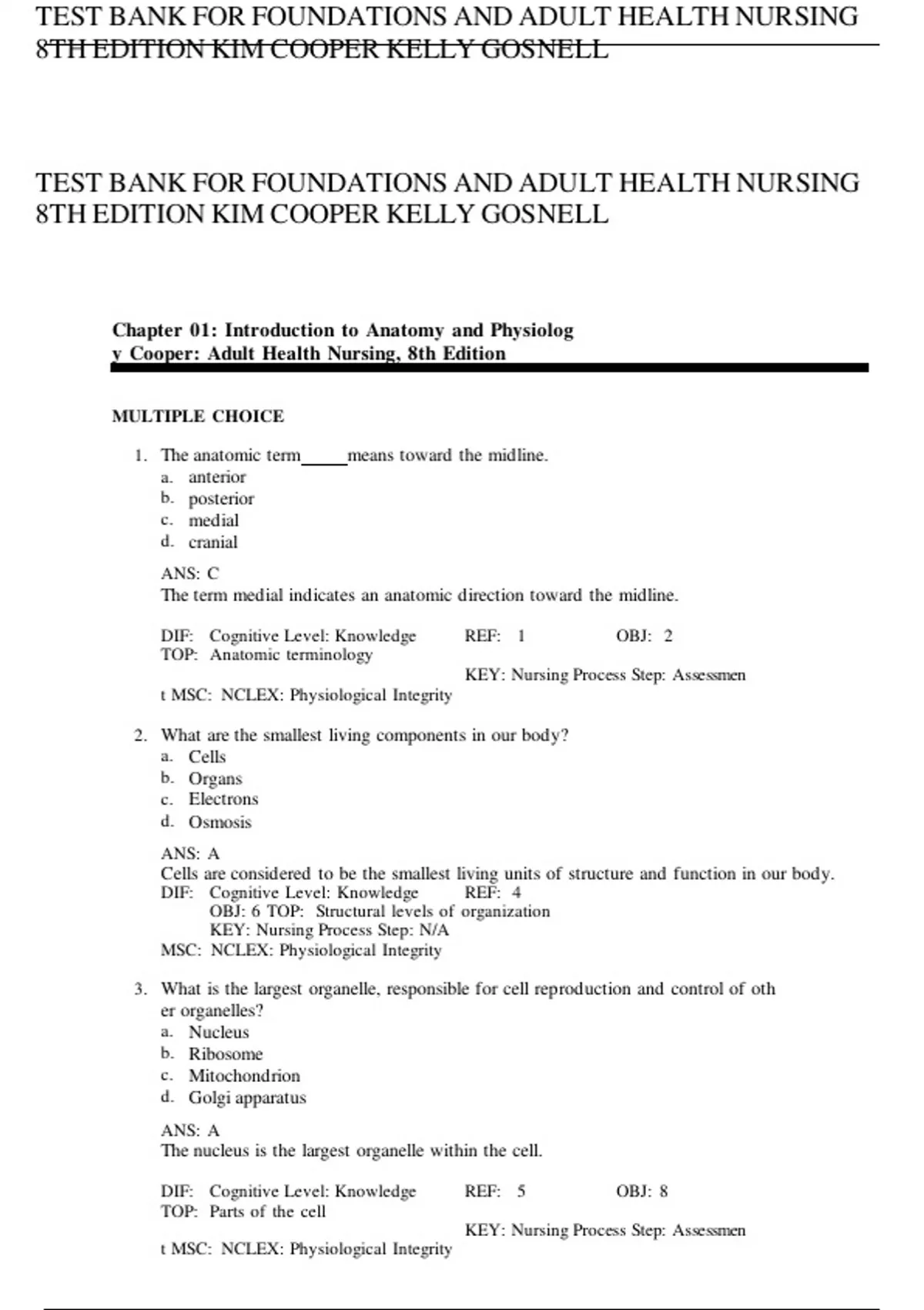 Test Bank Foundations and Adult Health Nursing 8th Edition by Kim Cooper Test BankChapter 1-58Complete Guide A+.pdf