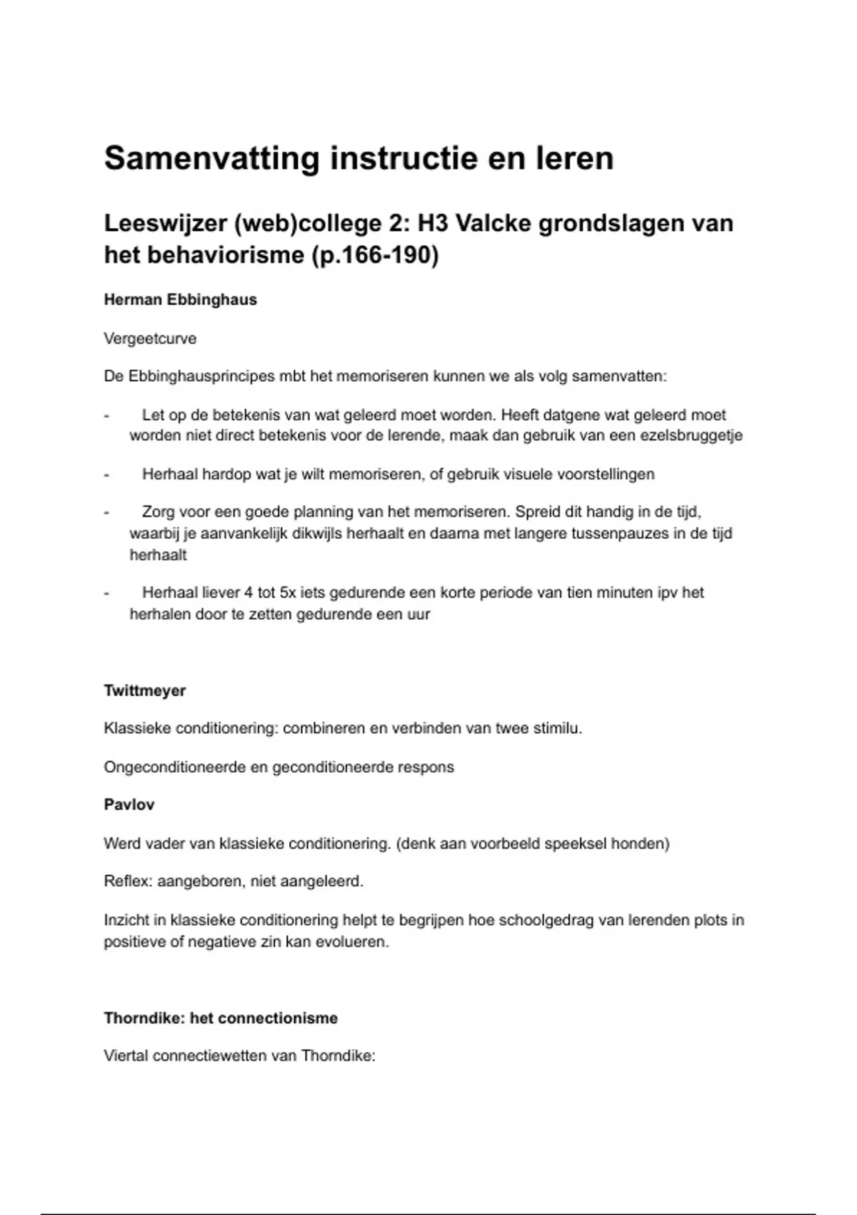 Thorndike legde sterke nadruk op herhaling net zoals de andere voorlopers.