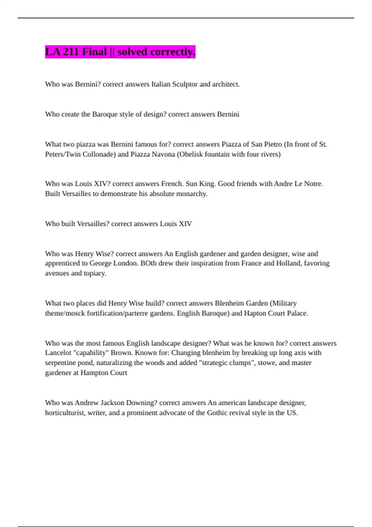 Who was Bernini? correct answers Italian Sculptor and architect.