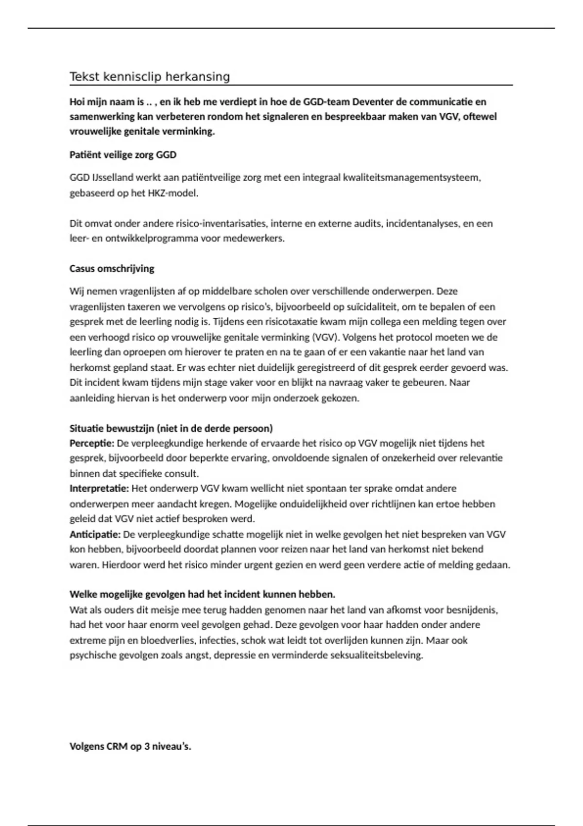 Perceptie: De verpleegkundige herkende of ervaarde het risico op VGV mogelijk niet tijdens het