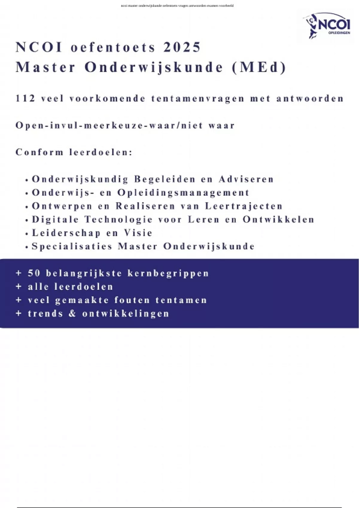, ncoi master onderwijskunde oefentoets vragen antwoorden examen voorbeeld