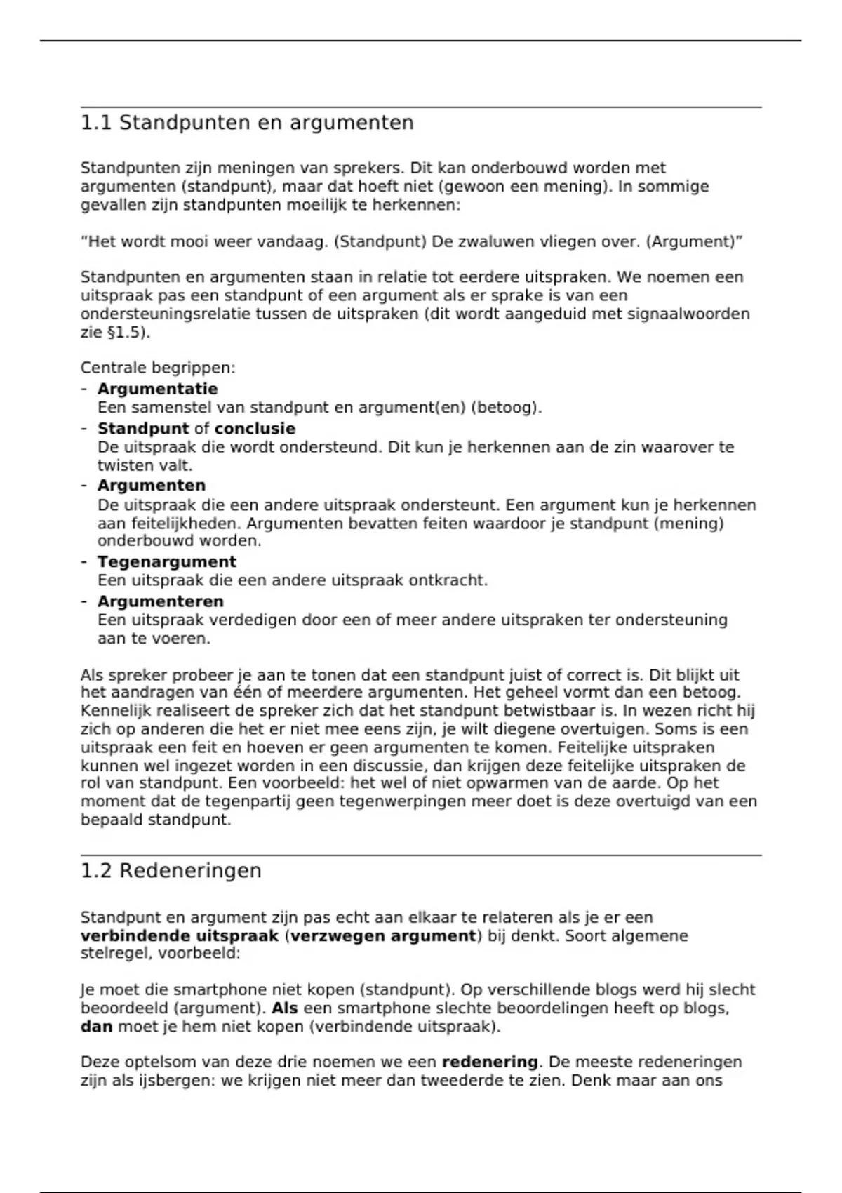 1.1 Standpunten en argumenten