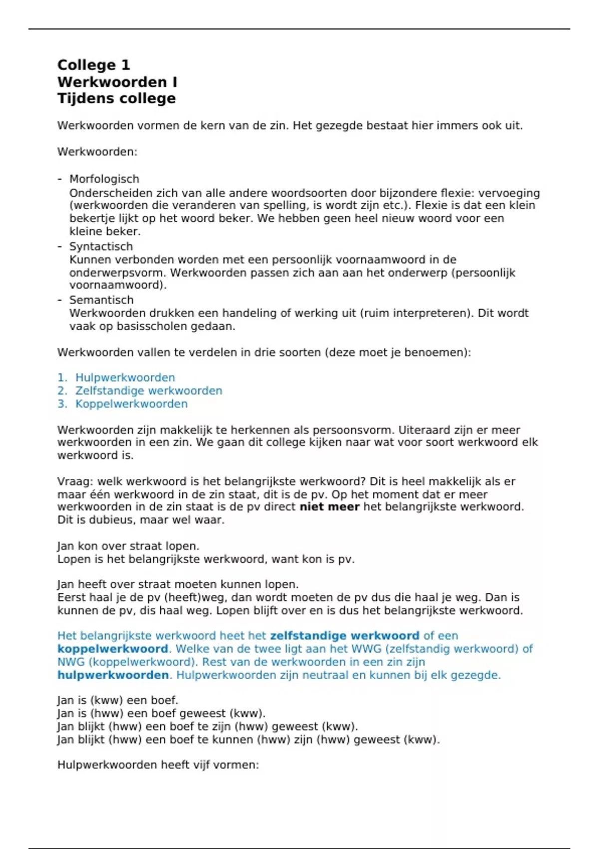 werkwoorden in een zin. We gaan dit college kijken naar wat voor soort werkwoord elk