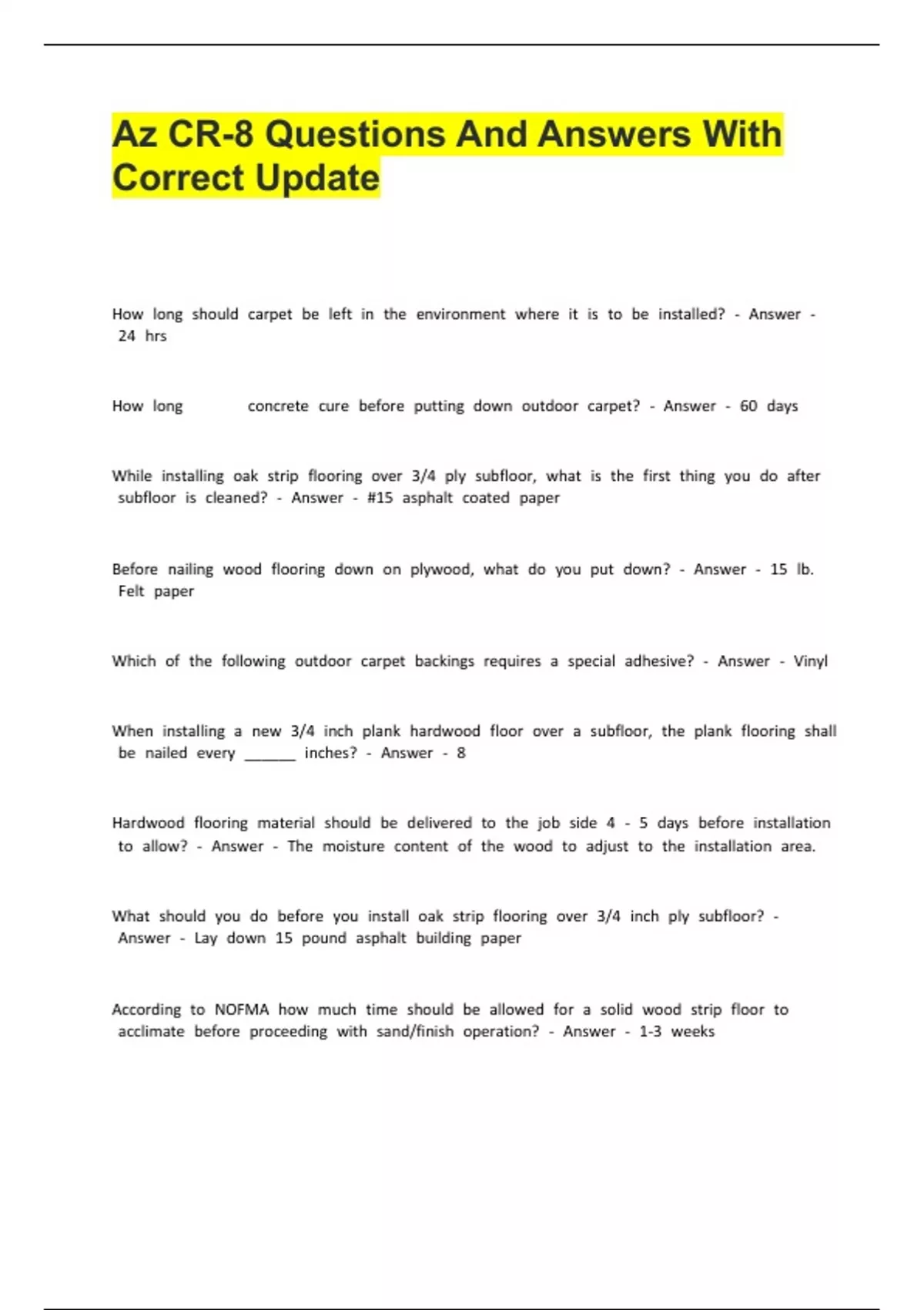 How blong bshould bcarpet bbe bleft bin bthe benvironment bwhere bit bis bto bbe binstalled? b- bAnswer b-