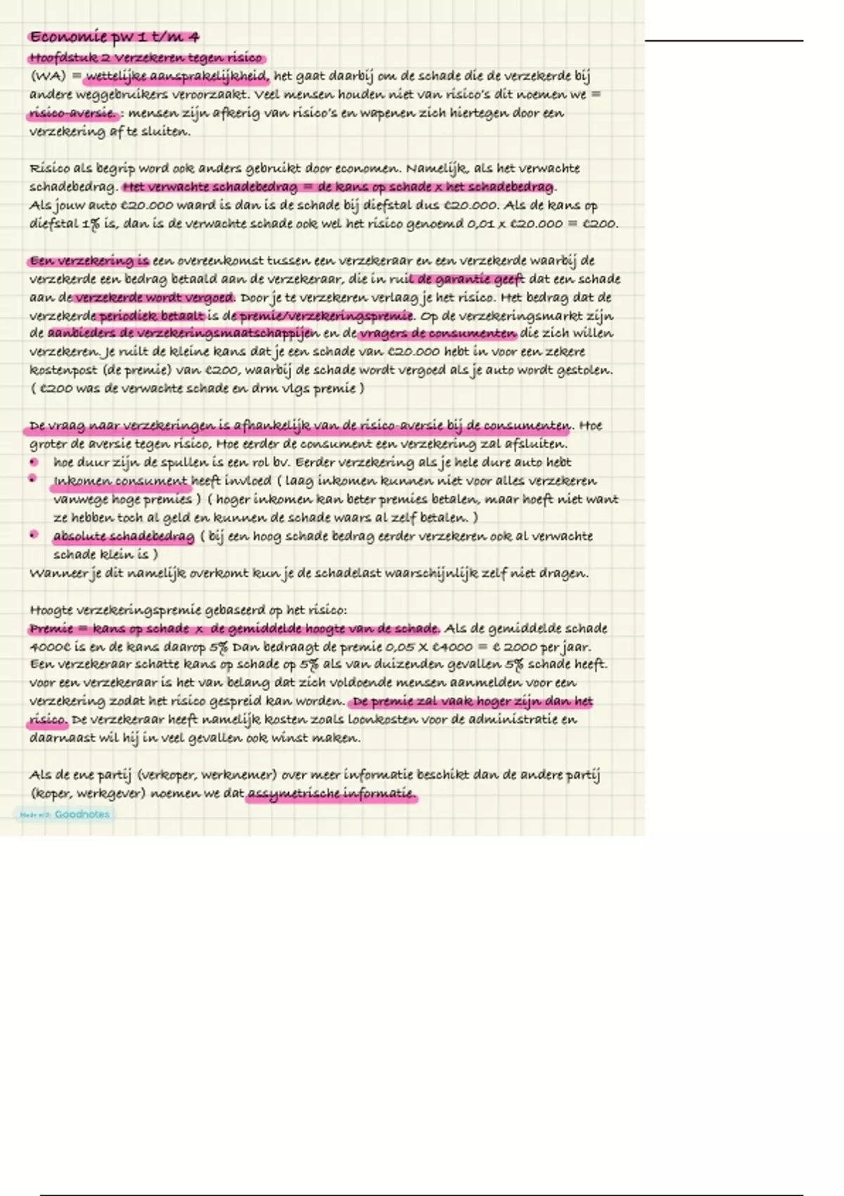 • premiediferentiatie = de slechte risico’s moeten meer premie betalen dan de goede