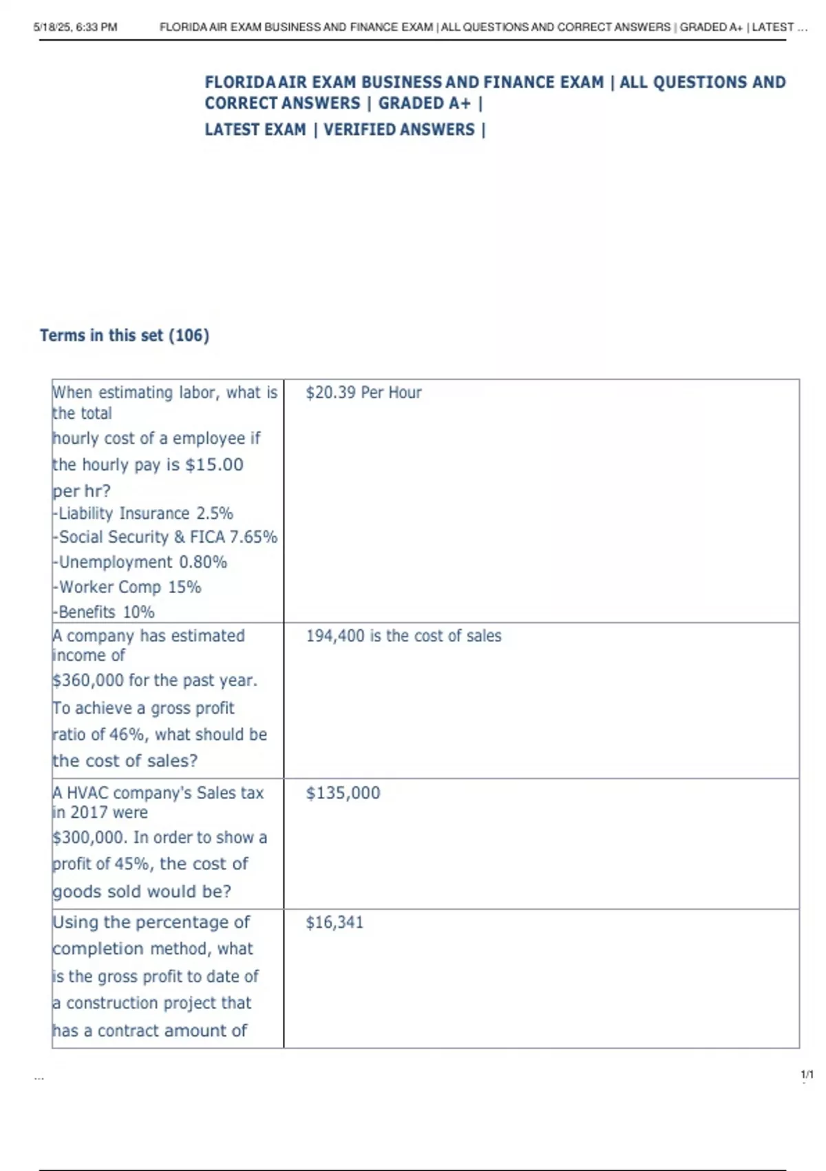 , 5/18/25, 6:33 PM FLORIDA AIR EXAM BUSINESS AND FINANCE EXAM | ALL QUESTIONS AND CORRECT ANSWERS | GRADED A+ | LATEST …