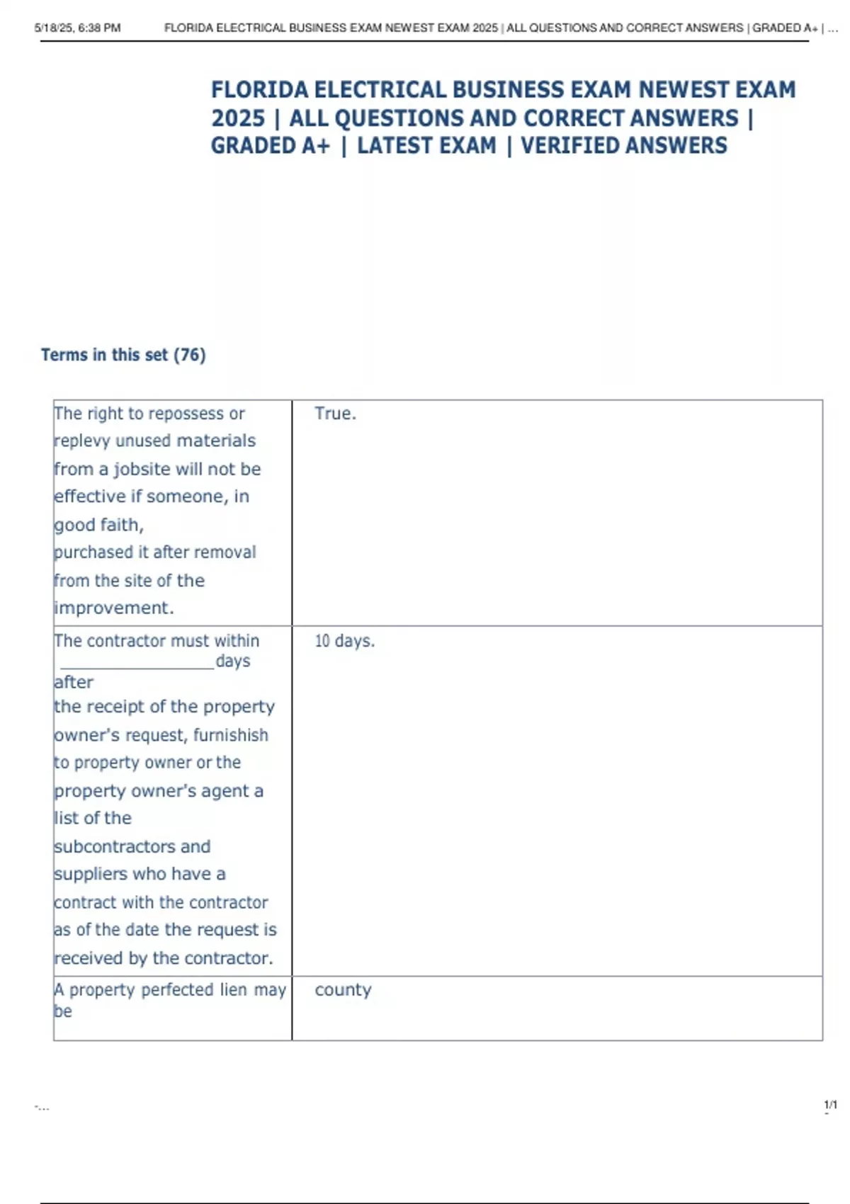 , 5/18/25, 6:38 PM FLORIDA ELECTRICAL BUSINESS EXAM NEWEST EXAM 2025 | ALL QUESTIONS AND CORRECT ANSWERS | GRADED A+ | …