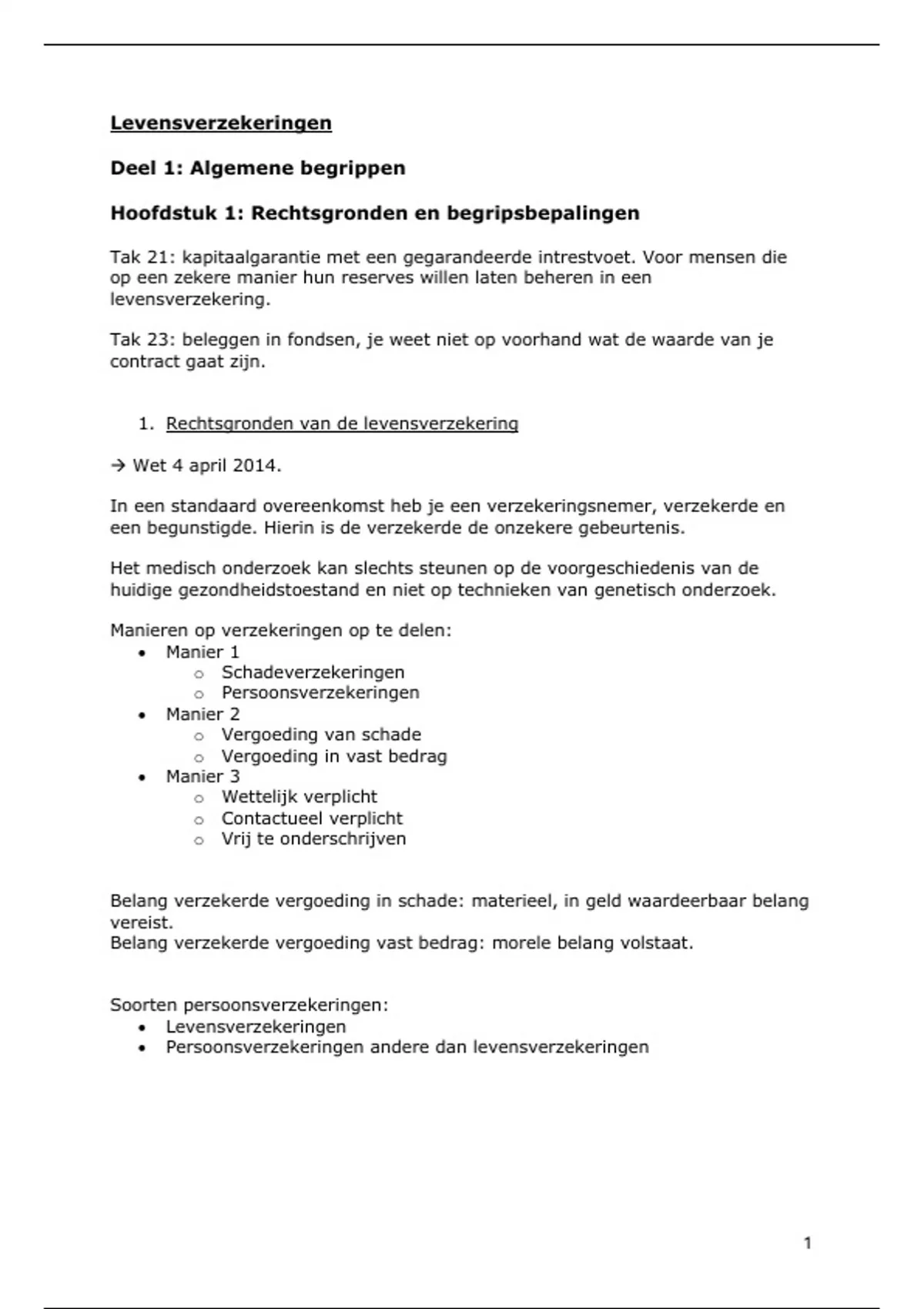 Levensverzekringen samenvatting