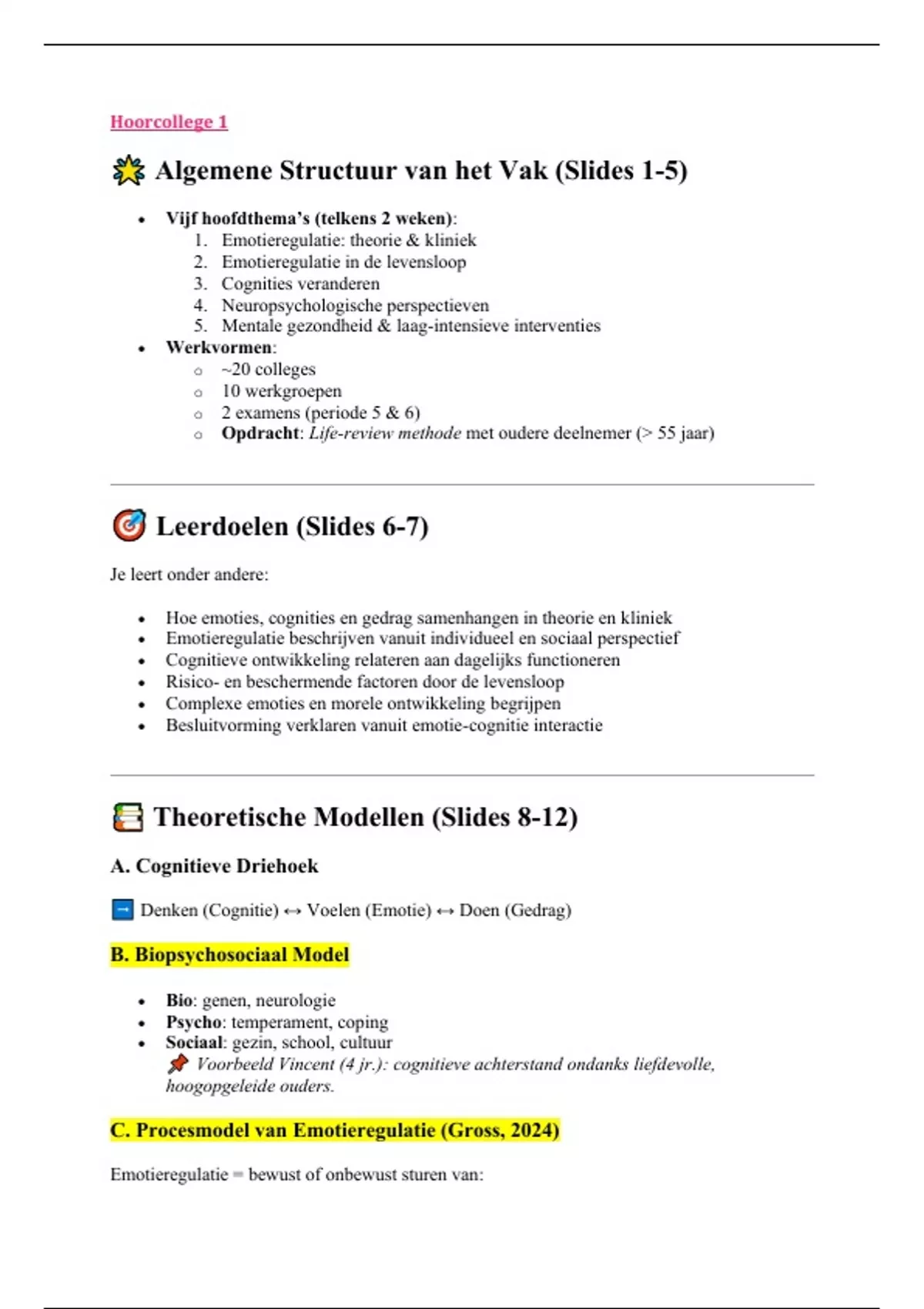 • Hoe emoties, cognities en gedrag samenhangen in theorie en kliniek