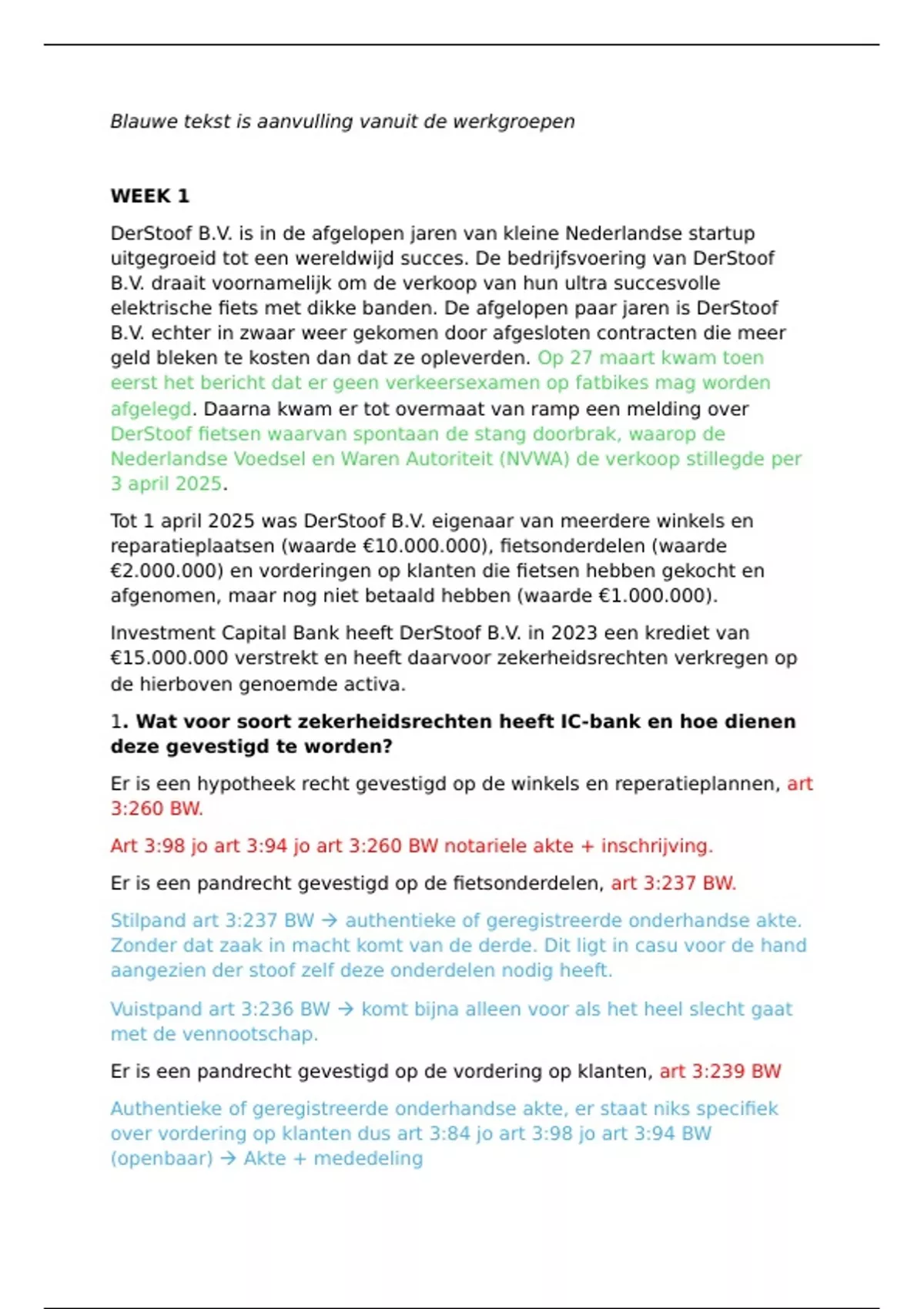 Alle werkgroepopdrachten + antwoorden week 1 tot en met 6 van het vak insolventierecht en zekerheid.