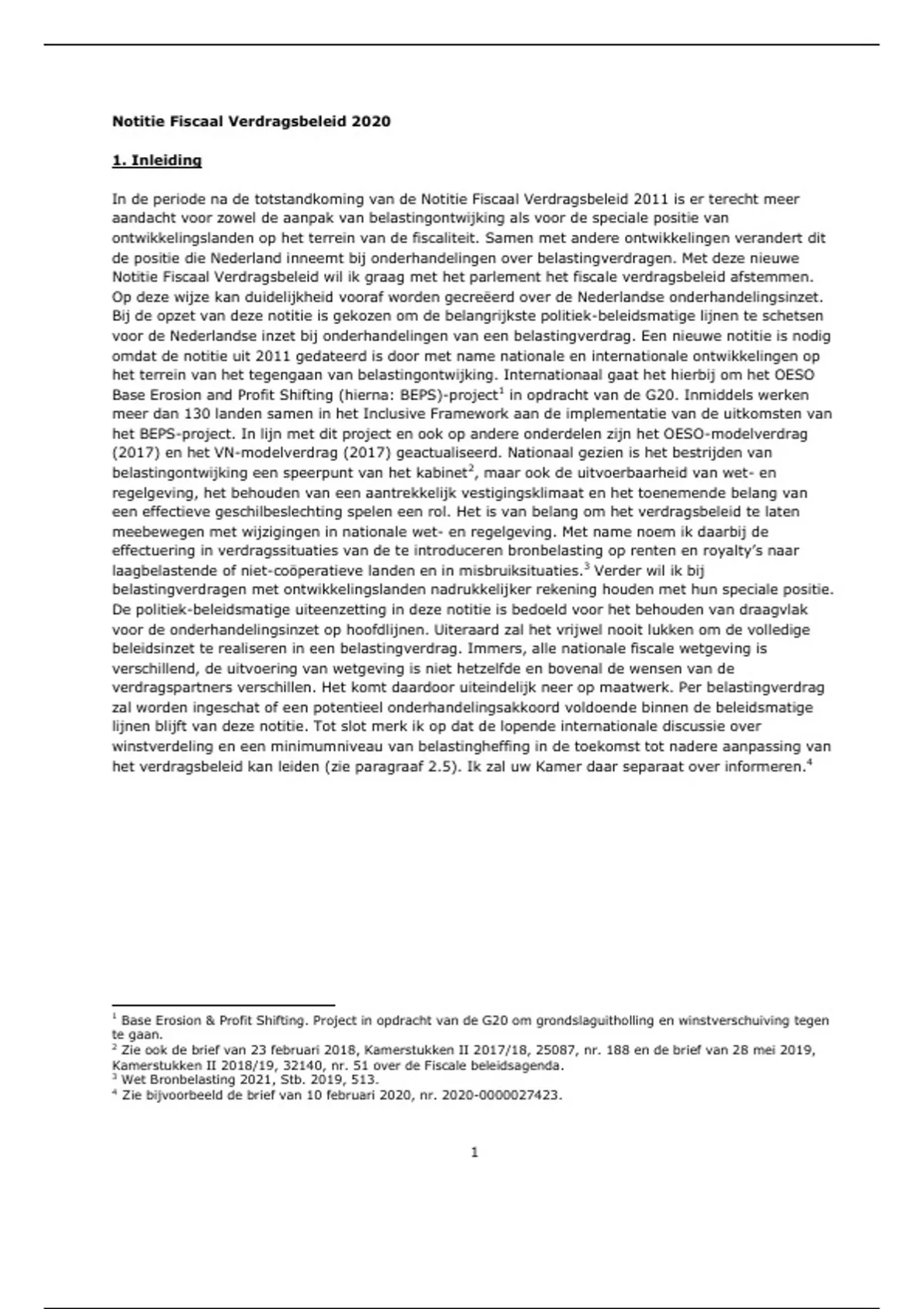 de positie die Nederland inneemt bij onderhandelingen over belastingverdragen. Met deze nieuwe