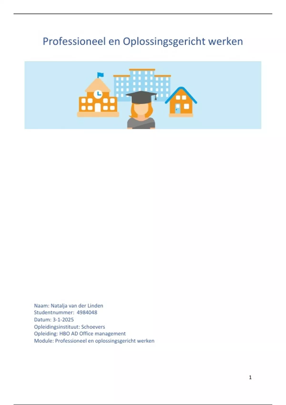 Moduleopdracht proffesioneel en oplossingsgericht werken Schoevers
