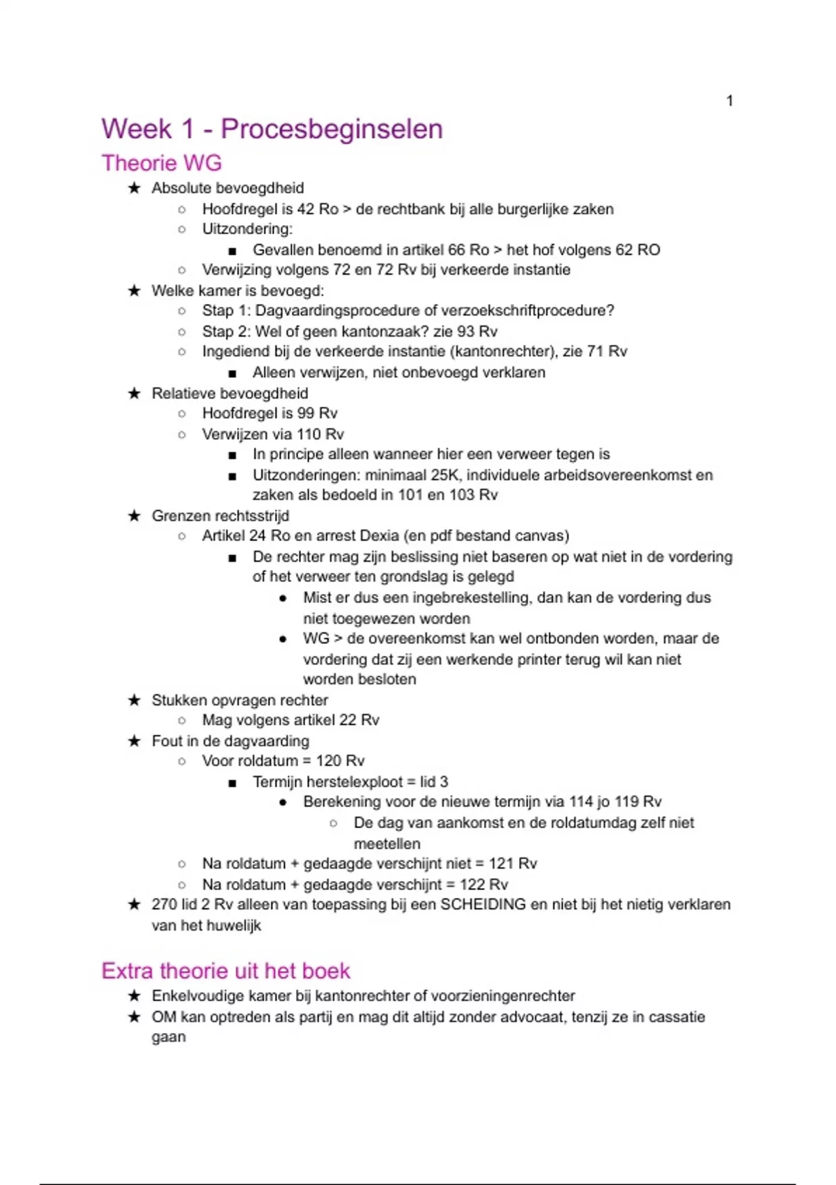 Samenvatting aan de hand van aantekeningen uit wg