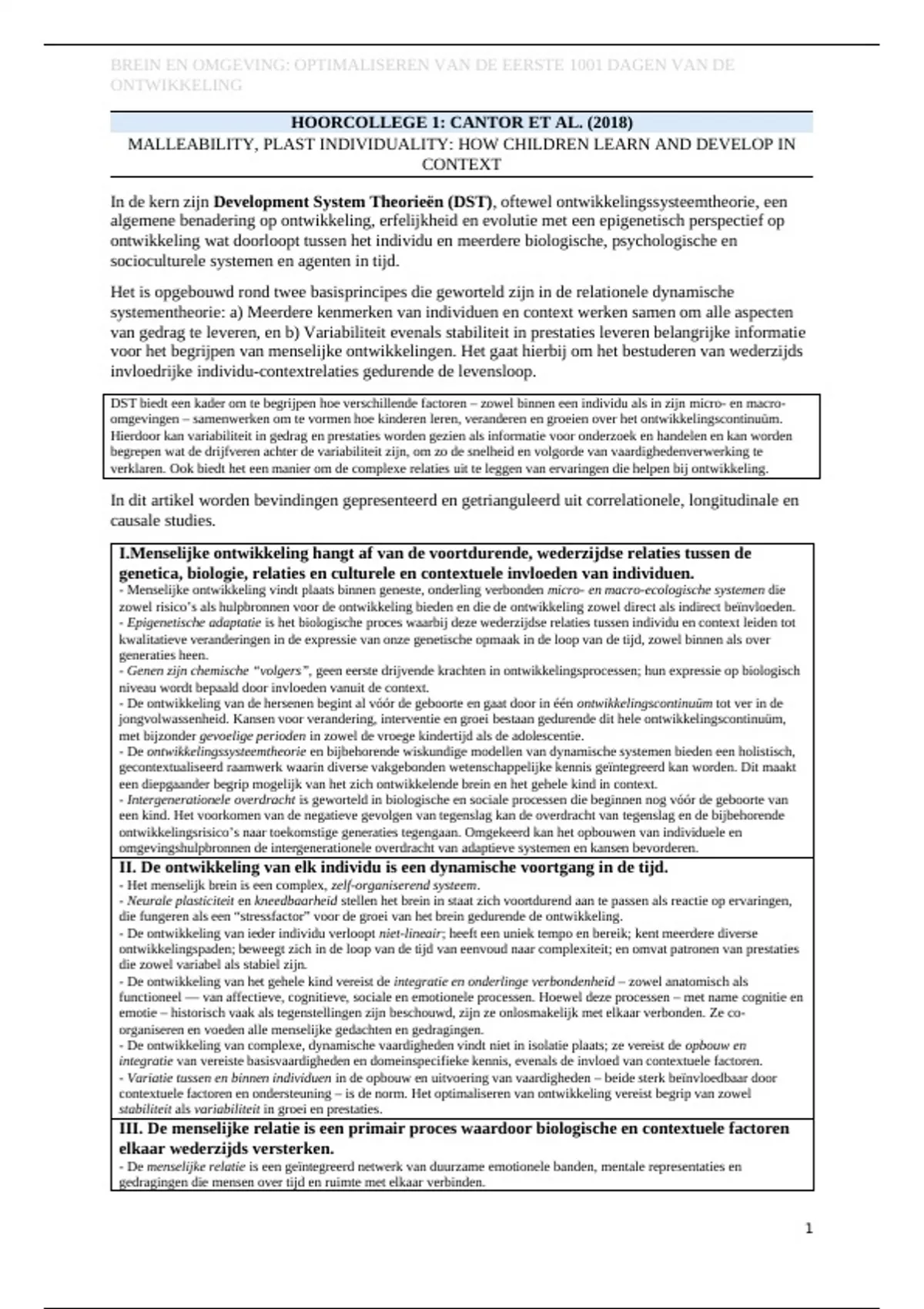 I.Menselijke ontwikkeling hangt af van de voortdurende, wederzijdse relaties tussen de