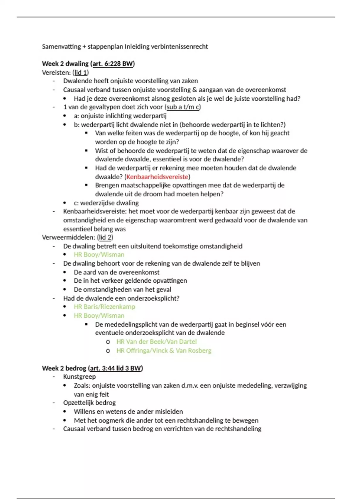 Samenvatting + stappenplan Inleiding verbintenissenrecht