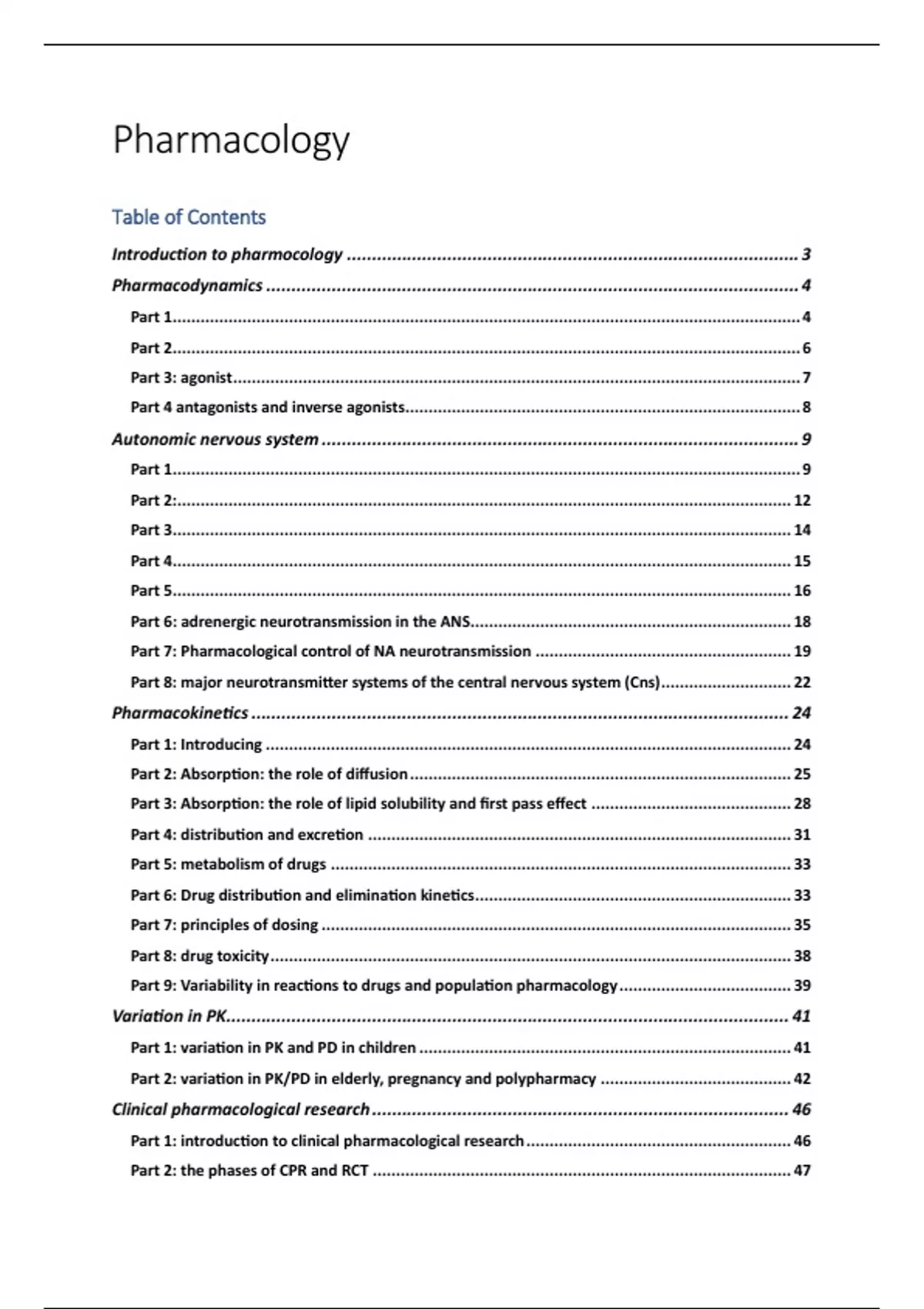 Very in depth summary for farmacologie course. All the videos summarized + every book chapter.