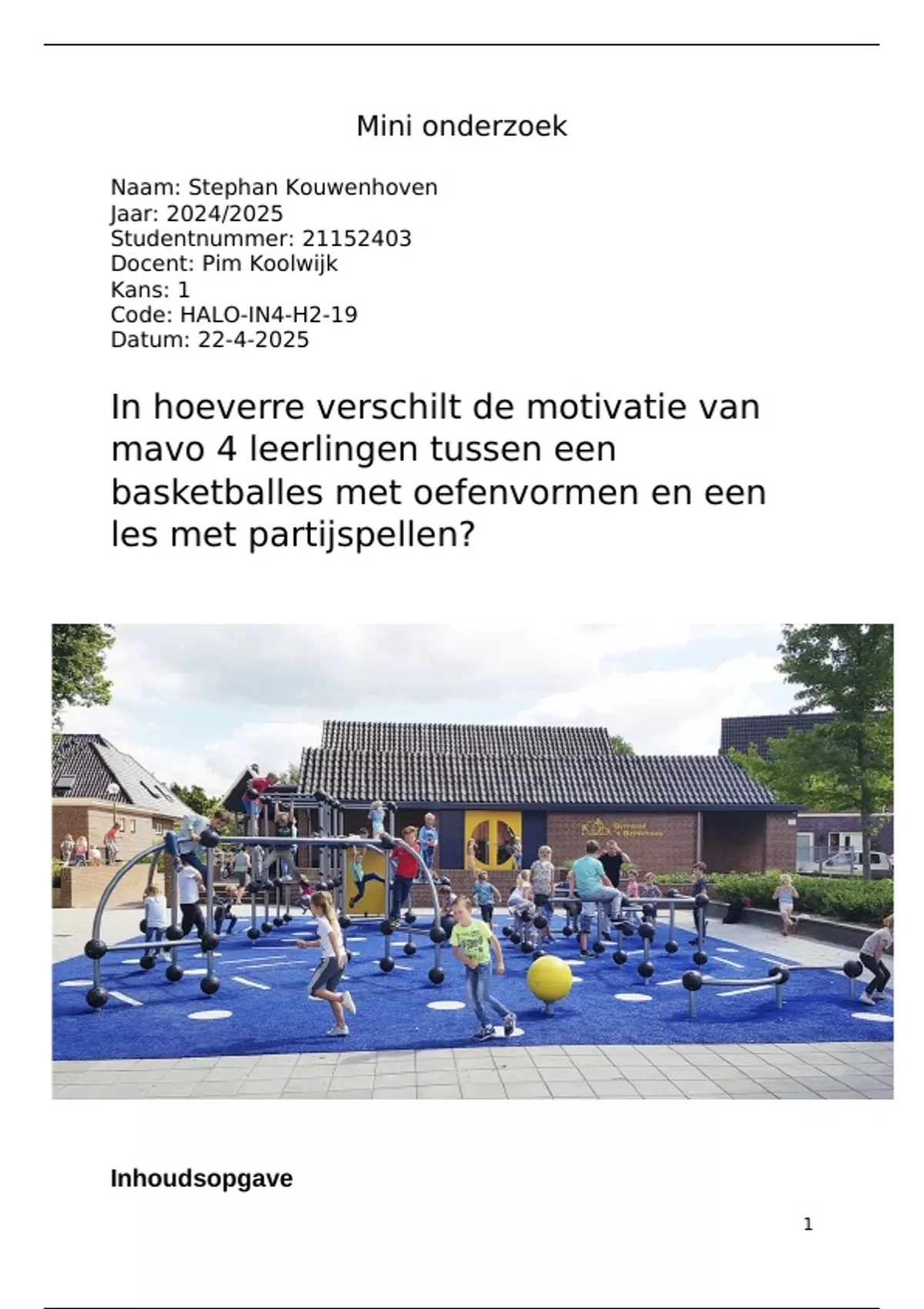 Mini onderzoek die beoordeeld is met een 6,5 door Rene Elzinga