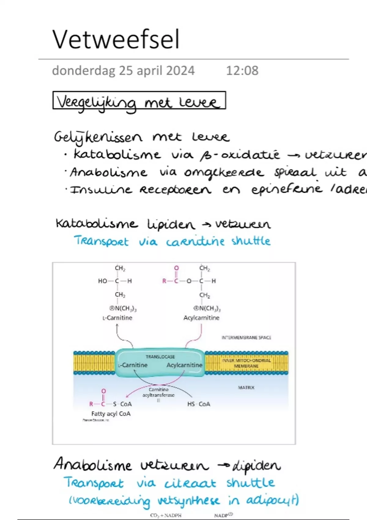 Volledige samenvatting - vetweefsel biochemie 3