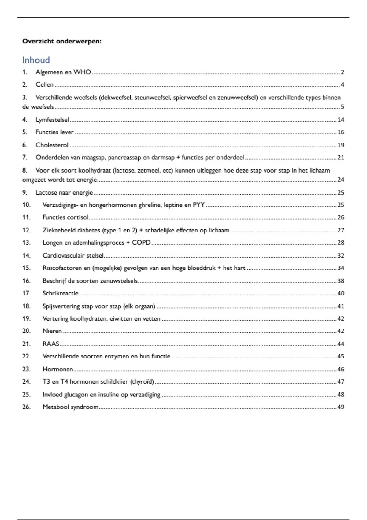 7. Onderdelen van maagsap, pancreassap en darmsap + functies per onderdeel ...................................................... 21