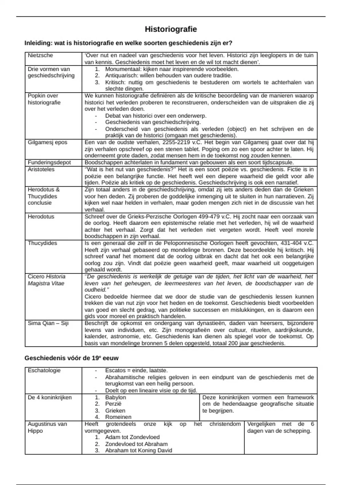 Begrippenlijst op basis van uitgebreide aantekeningen van de colleges over historiografie.
