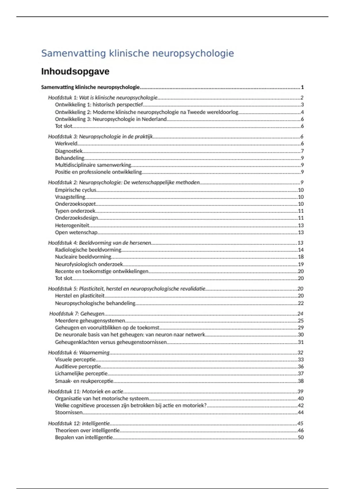 Samenvatting klinische neuropsychologie...................................................................................................... 1