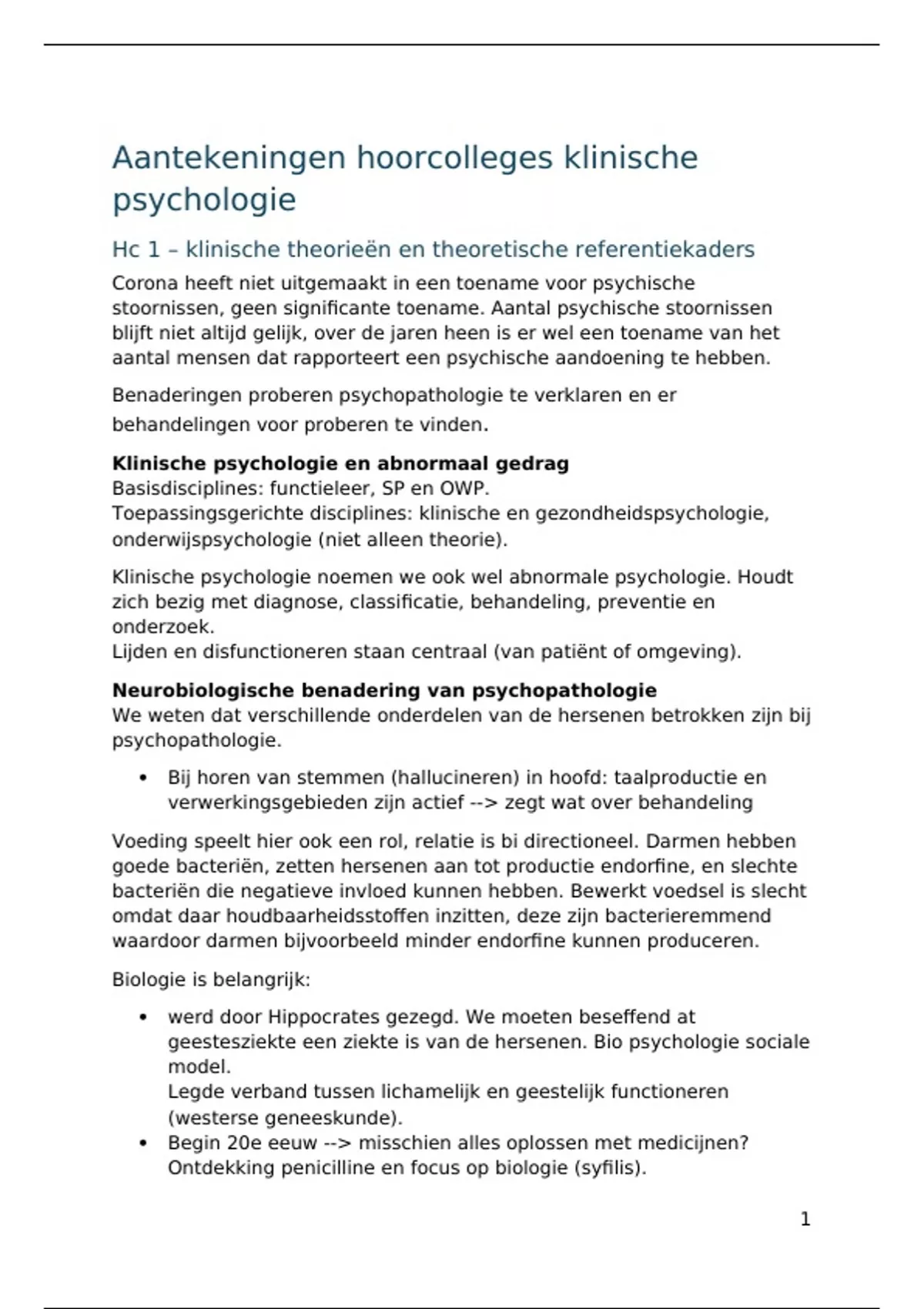 Aantekeningen hoorcolleges klinische