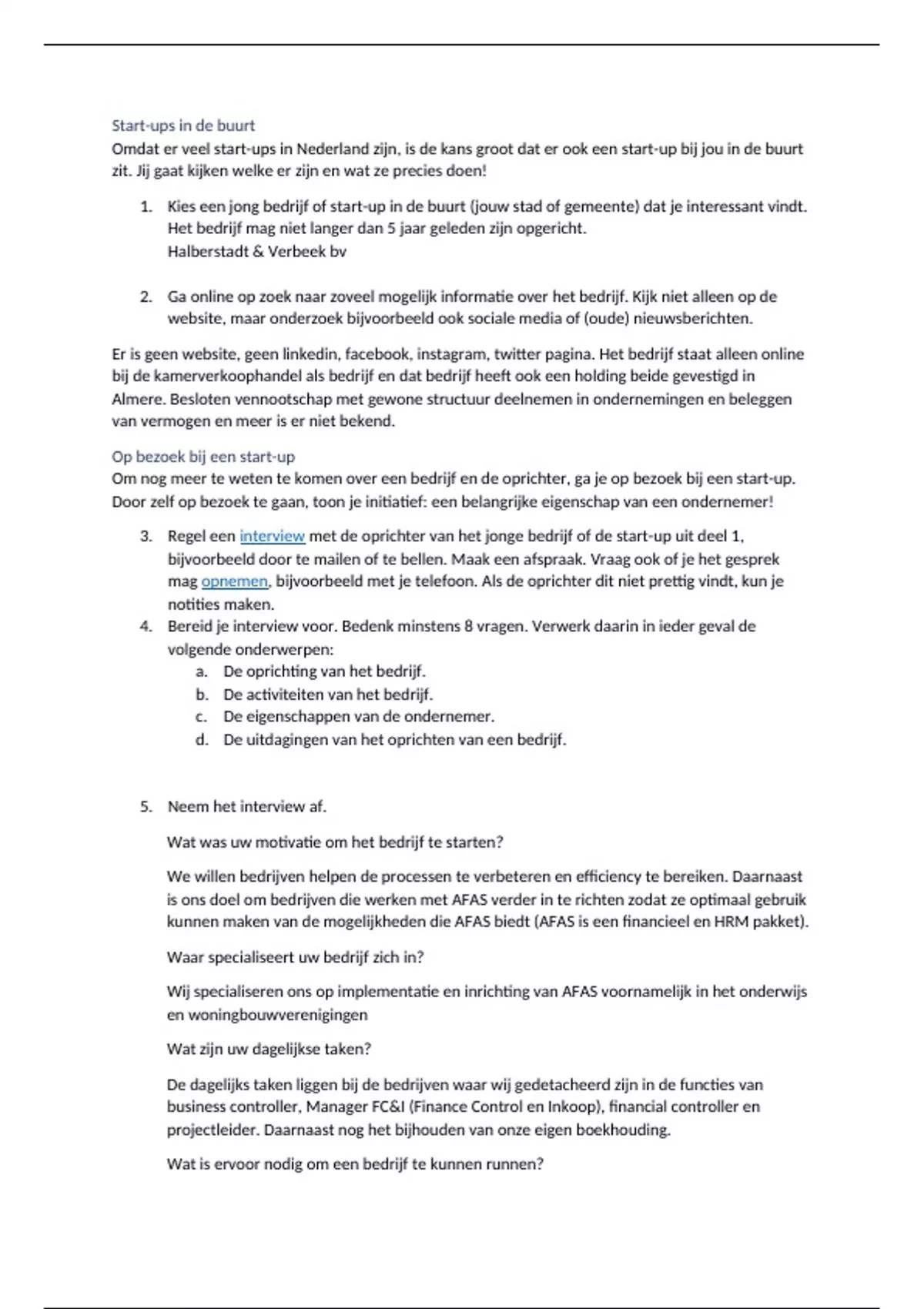 3. Regel een interview met de oprichter van het jonge bedrijf of de start-up uit deel 1,