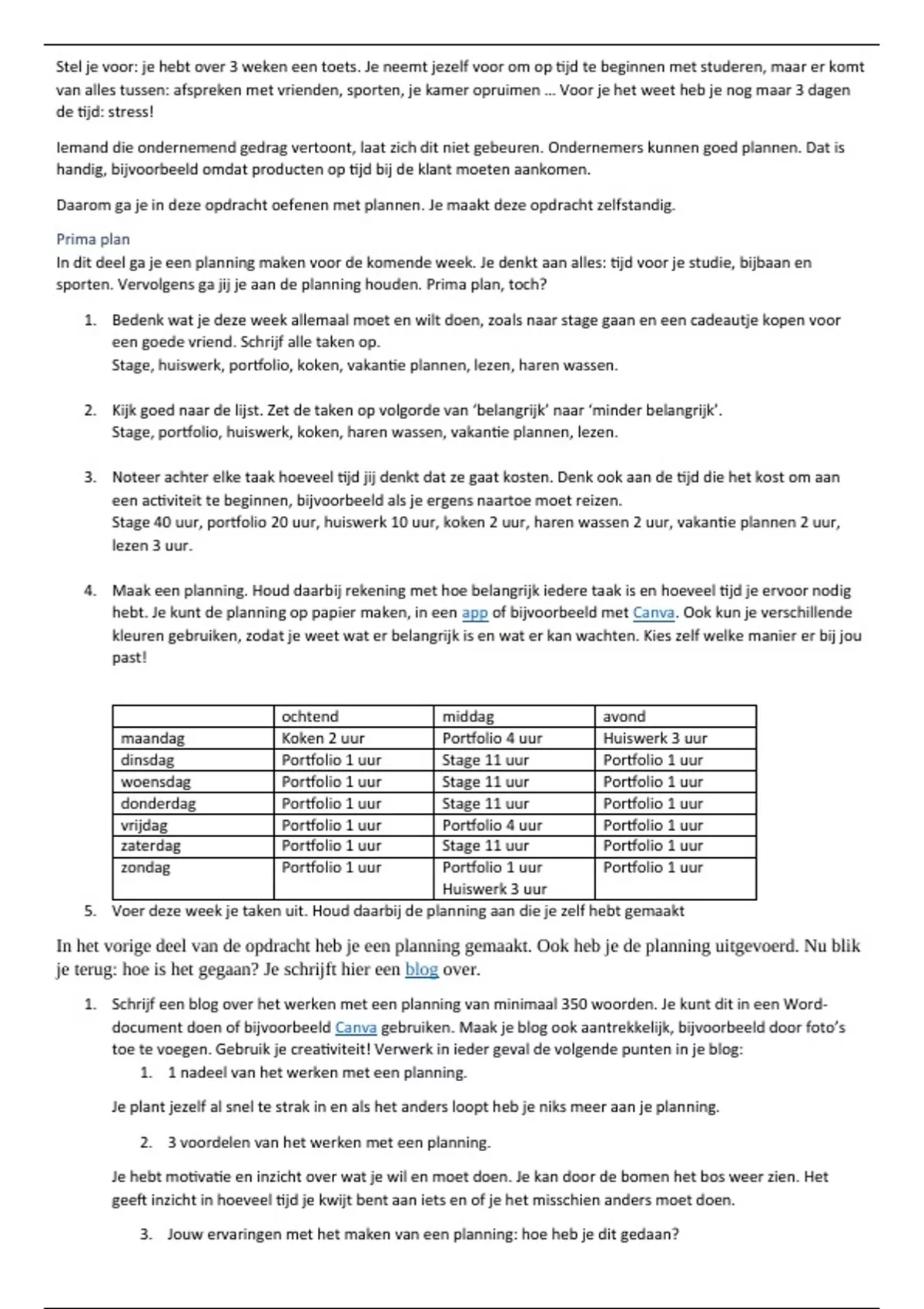 1. Schrijf een blog over het werken met een planning van minimaal 350 woorden. Je kunt dit in een Word-