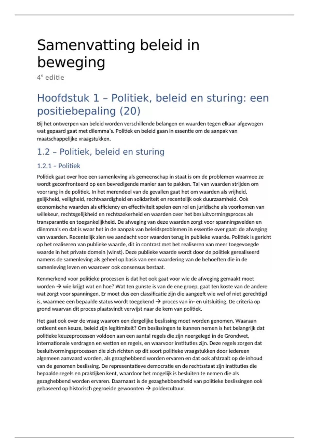 Hoofdstuk 1 – Politiek, beleid en sturing: een