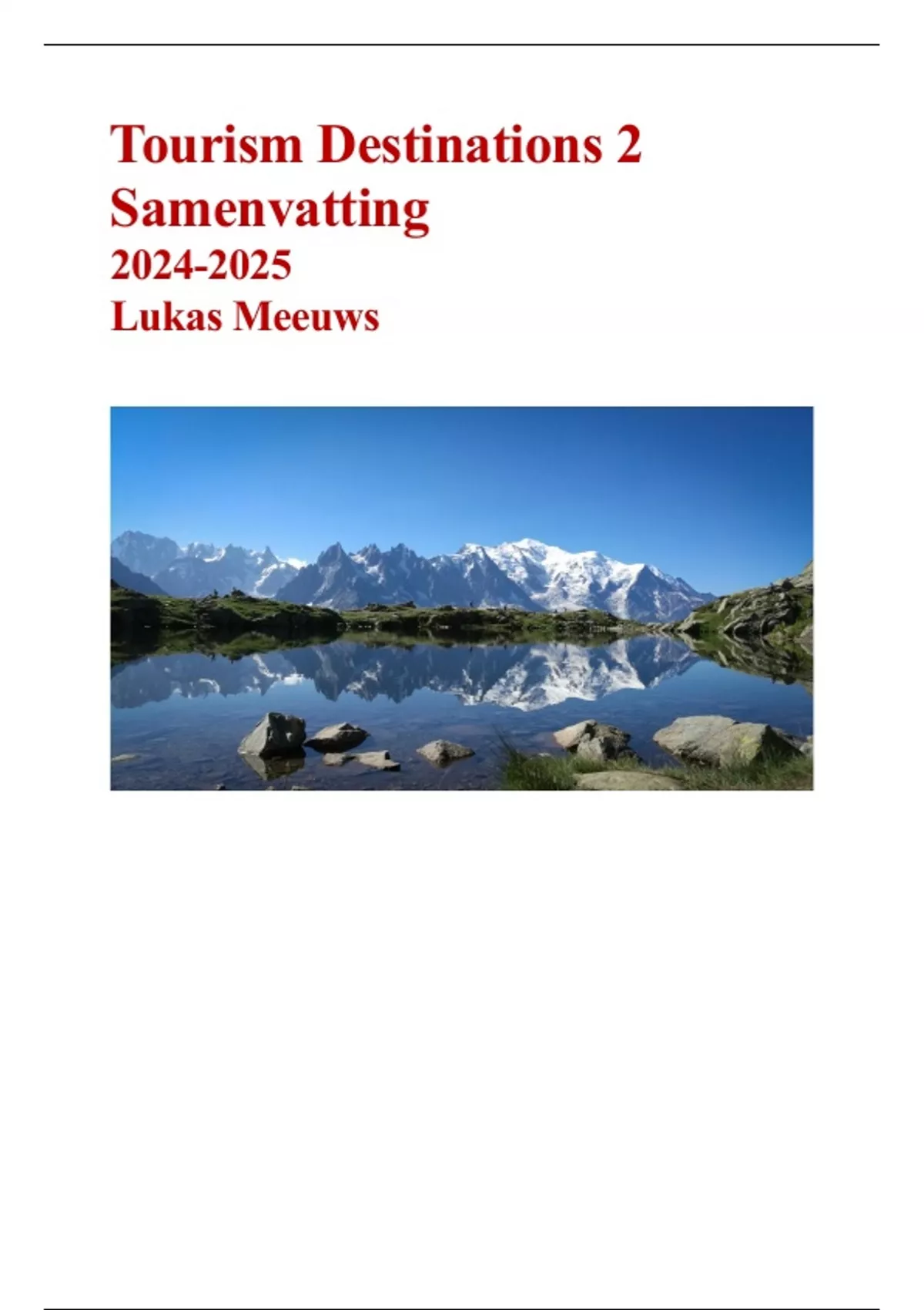 ,Samenvatting Tourism Destinations 2 ’24 - ’25 Lukas Meeuws