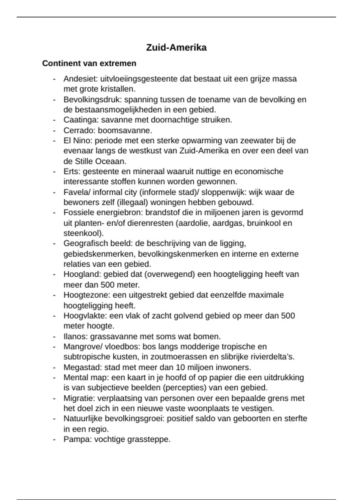 Samenvatting Aardrijkskunde Zuid-Amerika