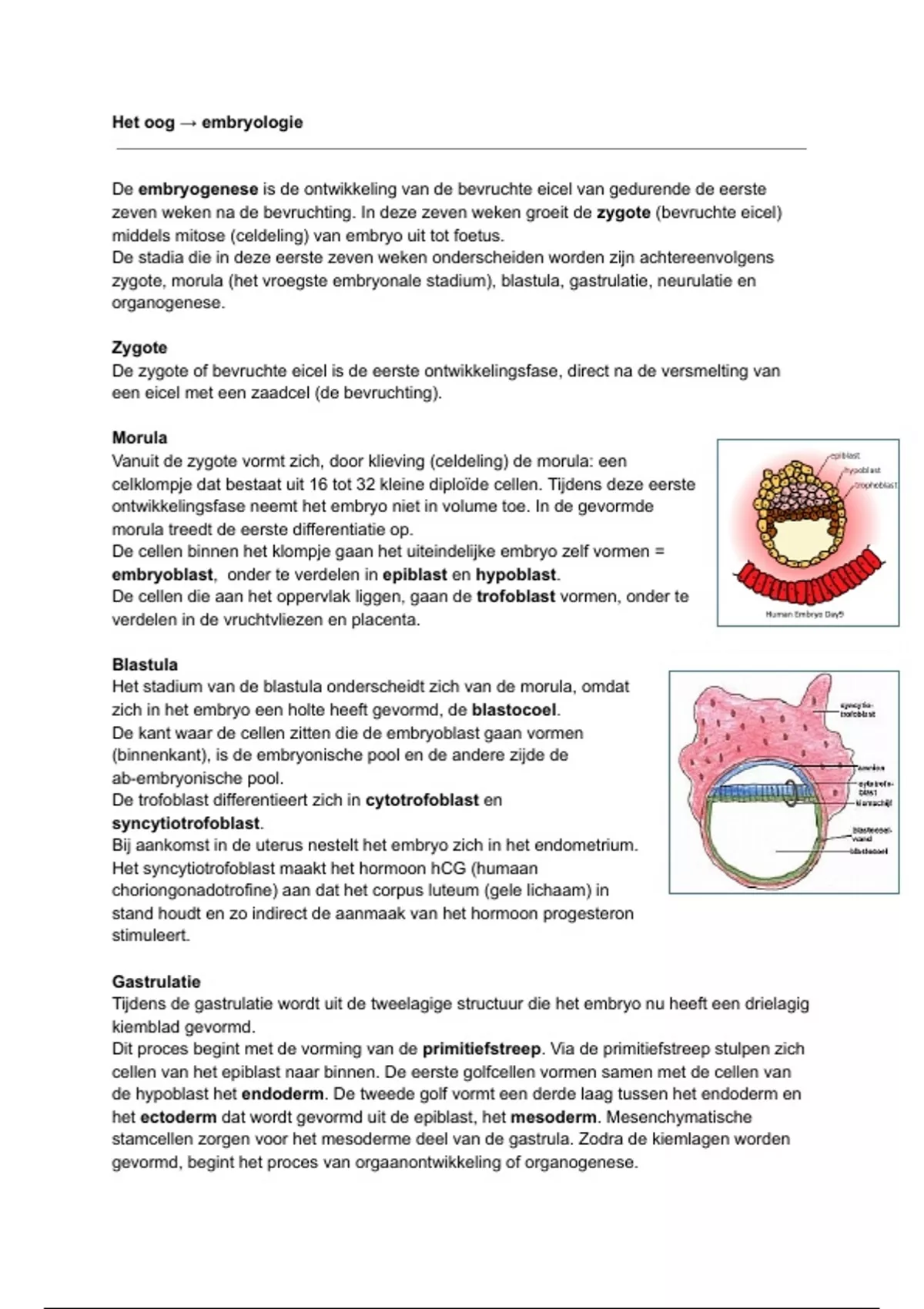 zygote, morula (het vroegste embryonale stadium), blastula, gastrulatie, neurulatie en