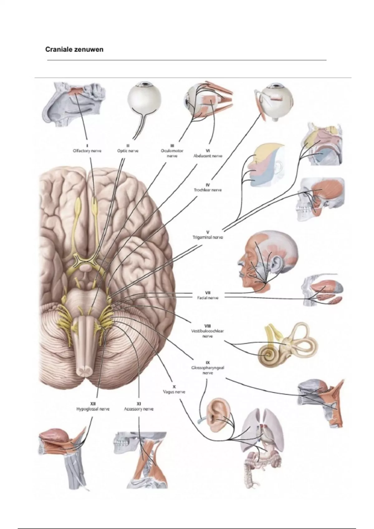 Duidelijk overzicht van de hersenzenuwen