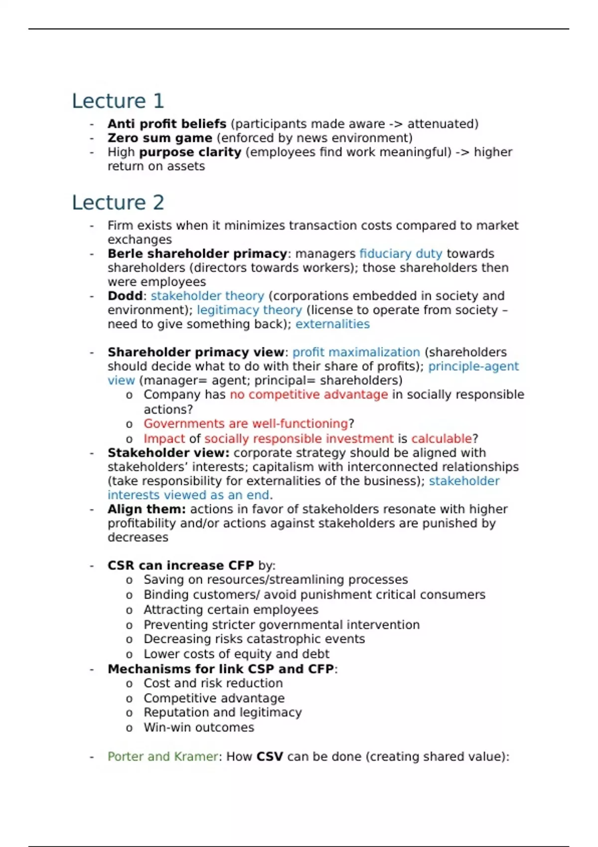 - Shareholder primacy view: profit maximalization (shareholders