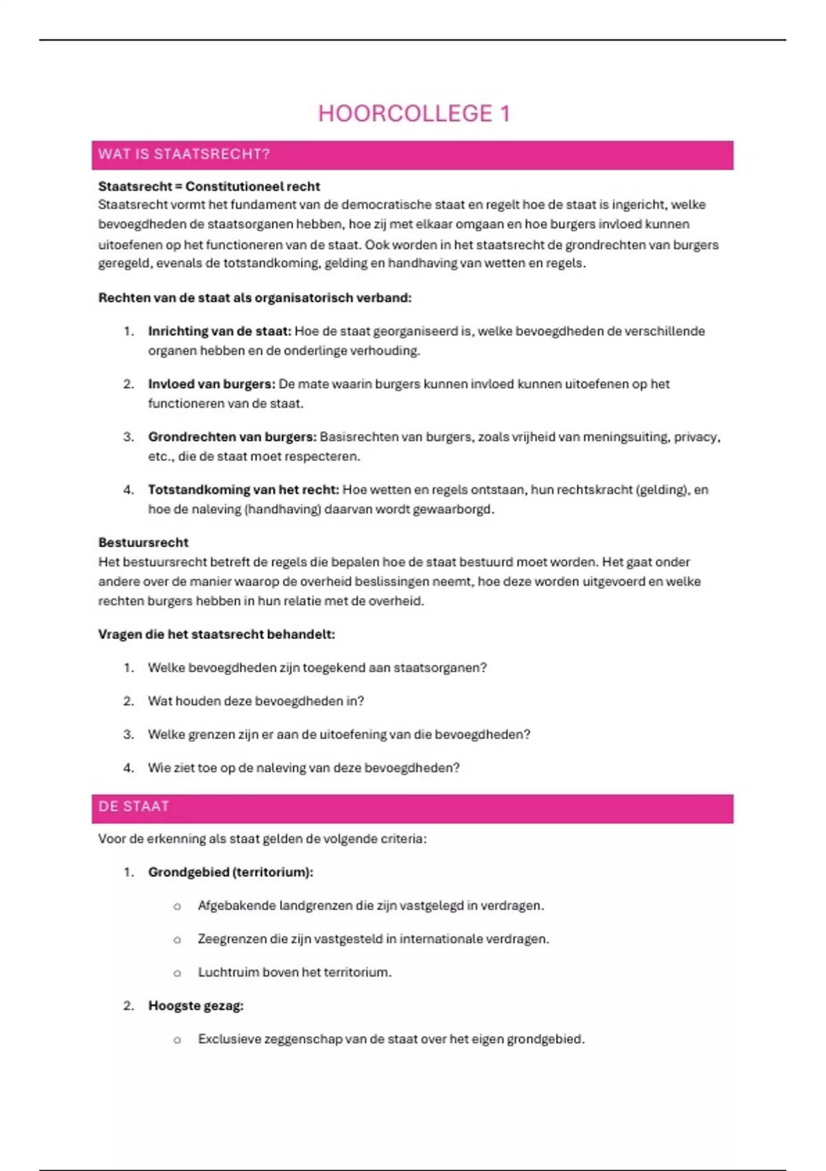 1. Inrichting van de staat: Hoe de staat georganiseerd is, welke bevoegdheden de verschillende