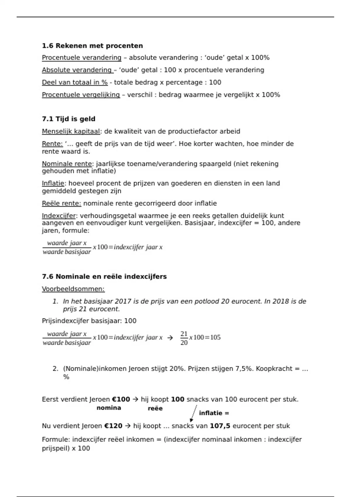 2. (Nominale)inkomen Jeroen stijgt 20%. Prijzen stijgen 7,5%. Koopkracht =