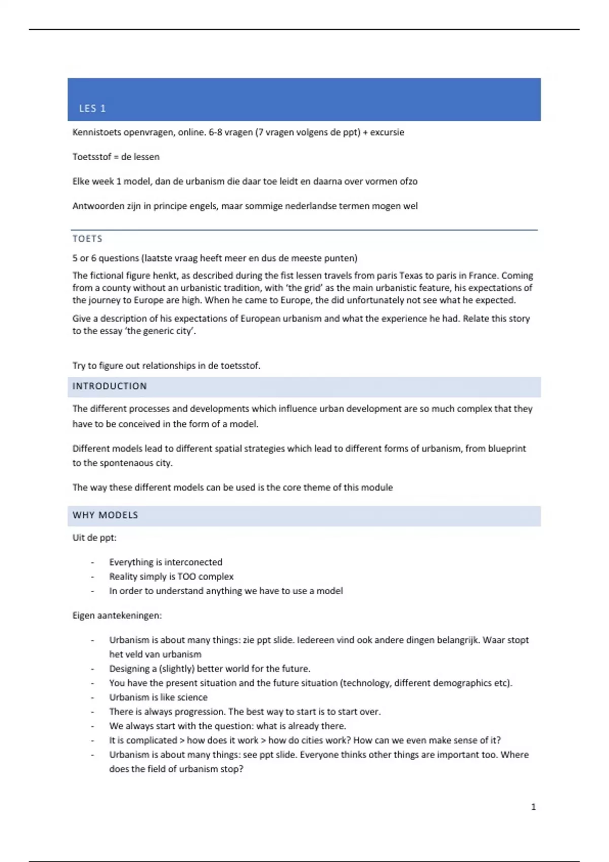 Elke week 1 model, dan de urbanism die daar toe leidt en daarna over vormen ofzo