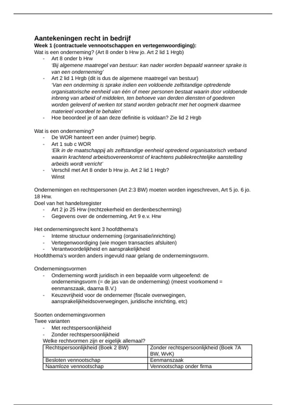 Week 1 (contractuele vennootschappen en vertegenwoordiging):