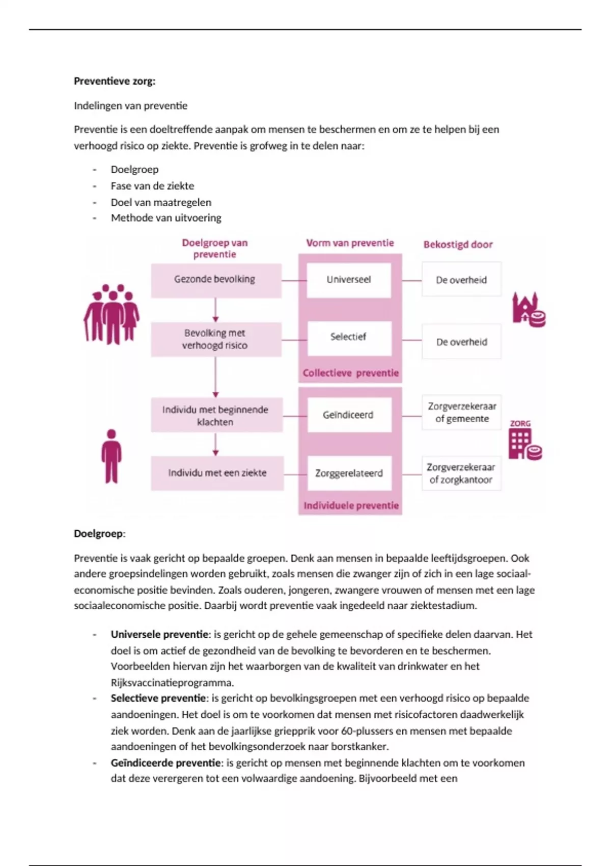- Zorg gerelateerde preventie: is gericht op mensen die al te maken hebben met een ziekte of