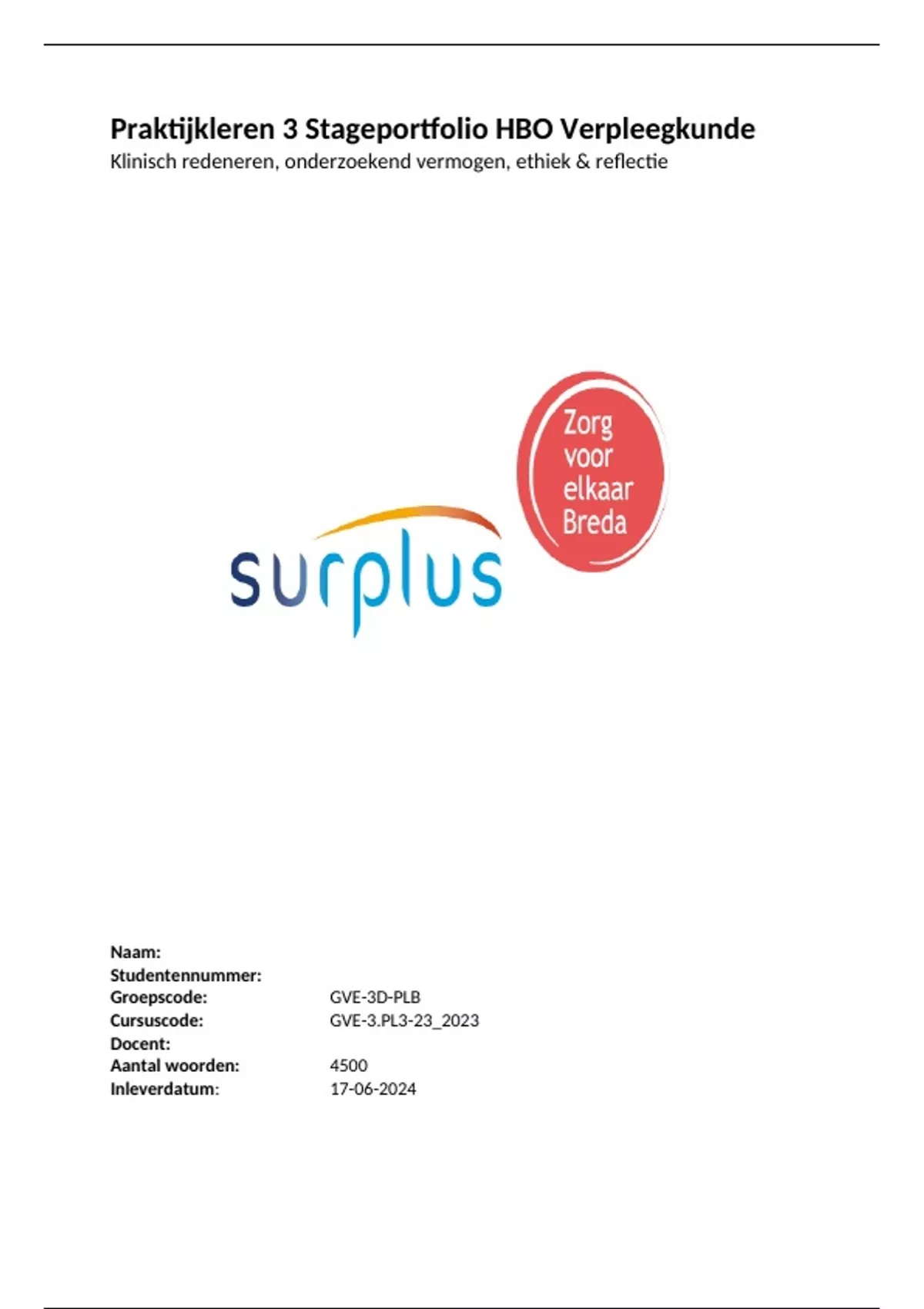 Praktijkleren 3 Stageportfolio HBO Verpleegkunde