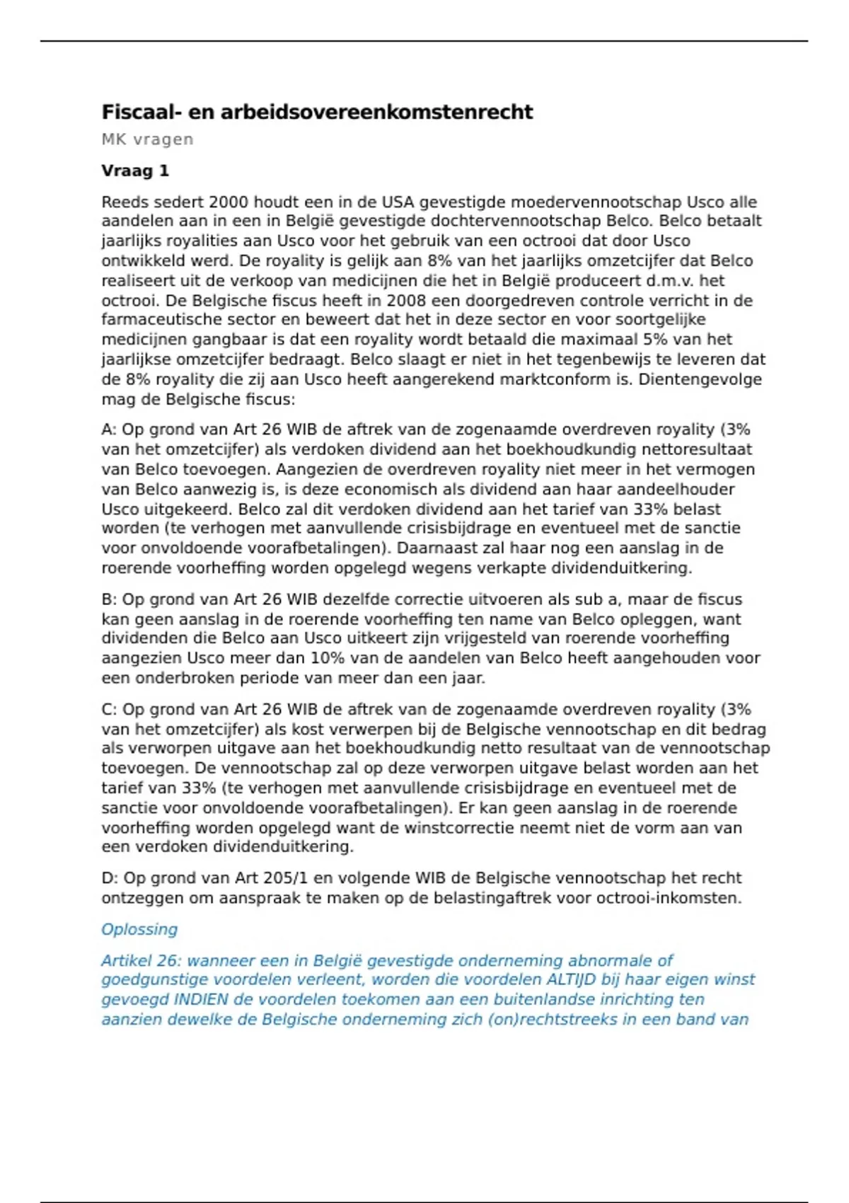 B: Op grond van Art 26 WIB dezelfde correctie uitvoeren als sub a, maar de fiscus